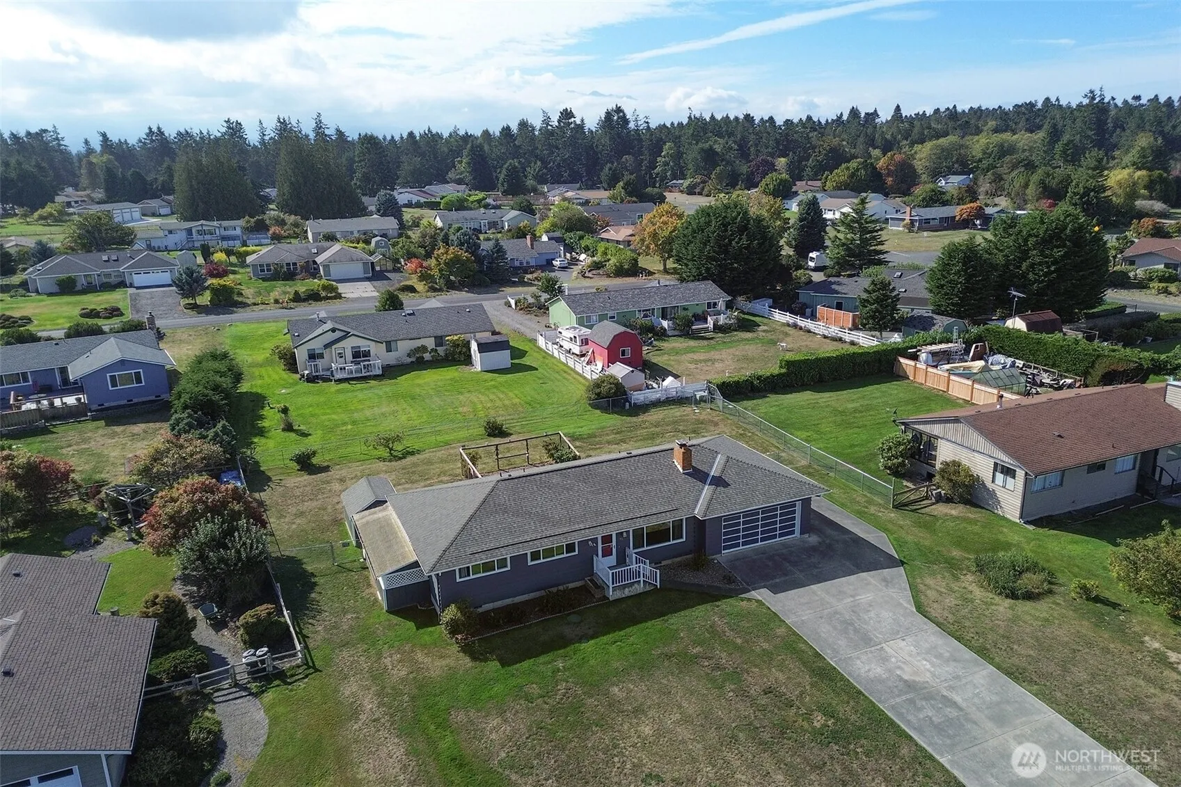 One level home, with a newly painted exterior, & new flooring throughout. Enjoy views of the Strait, the Dungeness Lighthouse, Cline Spit, and the Olympic Mountains. This 3 bedroom, 2 bath, home in Mains Farm is a rare find. Large living area with cozy wood stove, light and bright with big windows, tons of storage space, and dual entry via the garage, one ramp and one with steps. A fully fenced back yard with wood deck and deer-fenced garden area to soak in the southern exposure. Large exterior wood shed and an additional stand alone storage shed. Irrigation water for outside watering. Exceptional walking neighborhood, with access to the community waterfront lot.