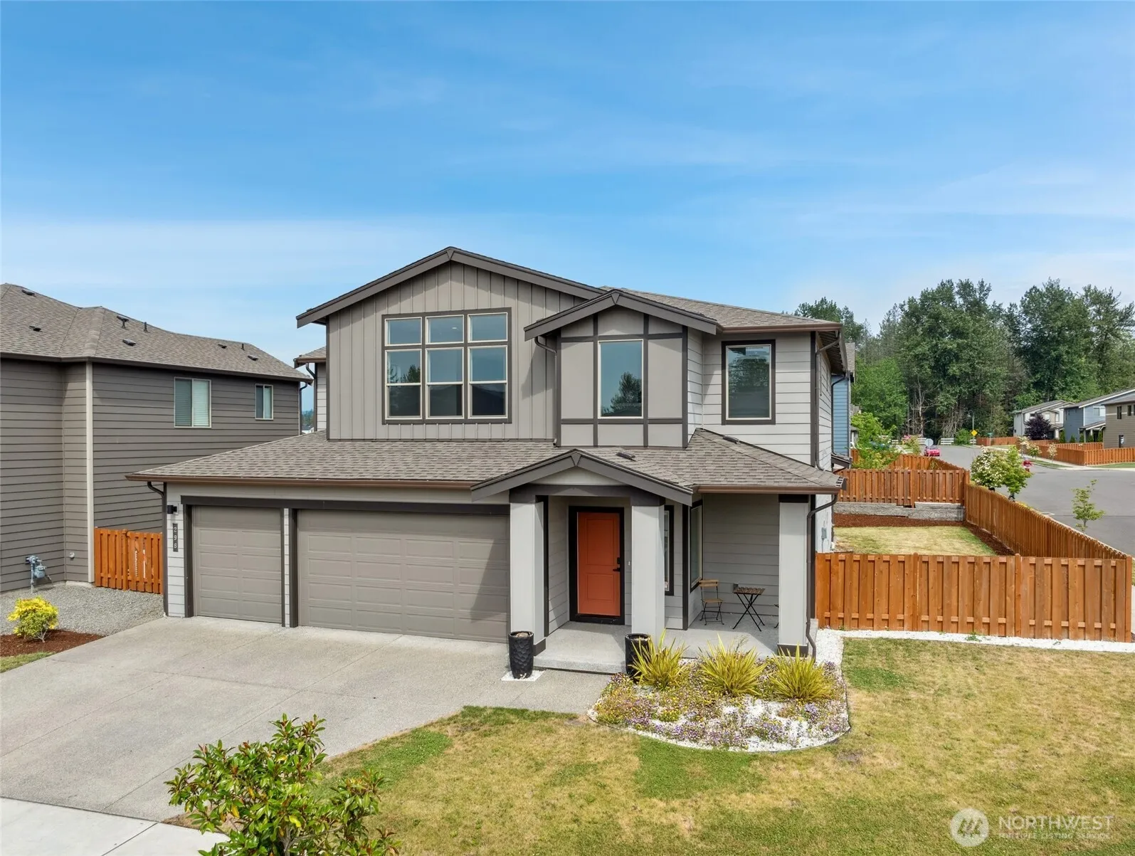 Discover this gorgeous 2022 resale in the sought-after Perkins Prairie neighborhood of Buckley. On a fully fenced corner lot, the home features a great room with an electric fireplace and a bright chef’s kitchen with white cabinetry, quartz counters, a center island, and a gas stainless stove. The main floor includes a 4th bedroom with an en-suite, while upstairs hosts the primary suite with a 5-piece bath and two walk-in closets, plus two more bedrooms and a bonus room. Step outside to a covered back patio with a gas BBQ stub, ideal for entertaining in comfort. With A/C, a three-car garage, and access to community parks, trails, and Buckley’s charming small-town surroundings, this is living at its best.