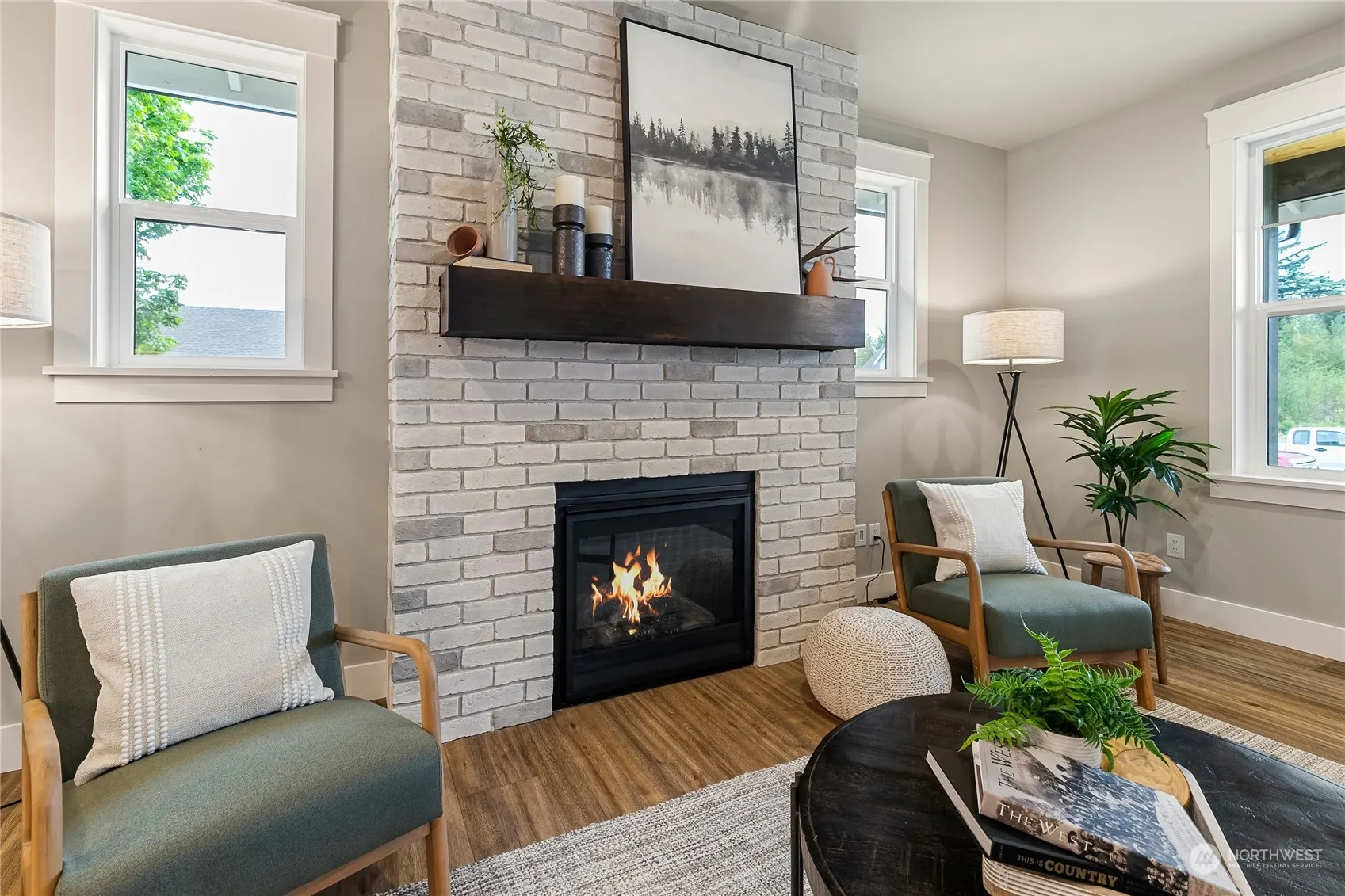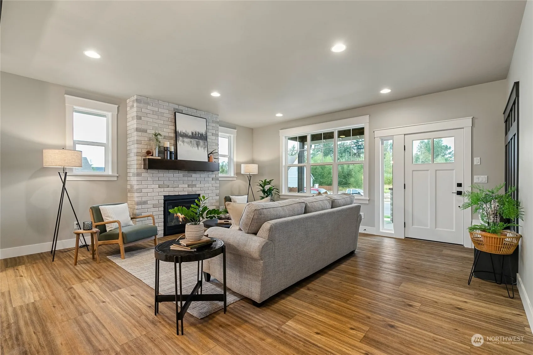 This beautiful craftsman-style house offers a comfortable, inviting living space with southern exposure. Step inside to discover an open room concept, spacious living room features a cozy fireplace with a custom mantle. The large kitchen is a chef’s dream, boasting an island and a walk-in pantry for all your storage needs. The adjacent dining area provides ample space for meals or entertaining guests. On the main floor, you’ll find an extra room that can easily be transformed into a home office or nursery, offering flexibility to suit your lifestyle. The primary bedroom is a true retreat, complete with an extra large walk-in closet and vaulted ceilings. Storage space is abundant. upgraded lighting package, bonus laundry cabinets/counter