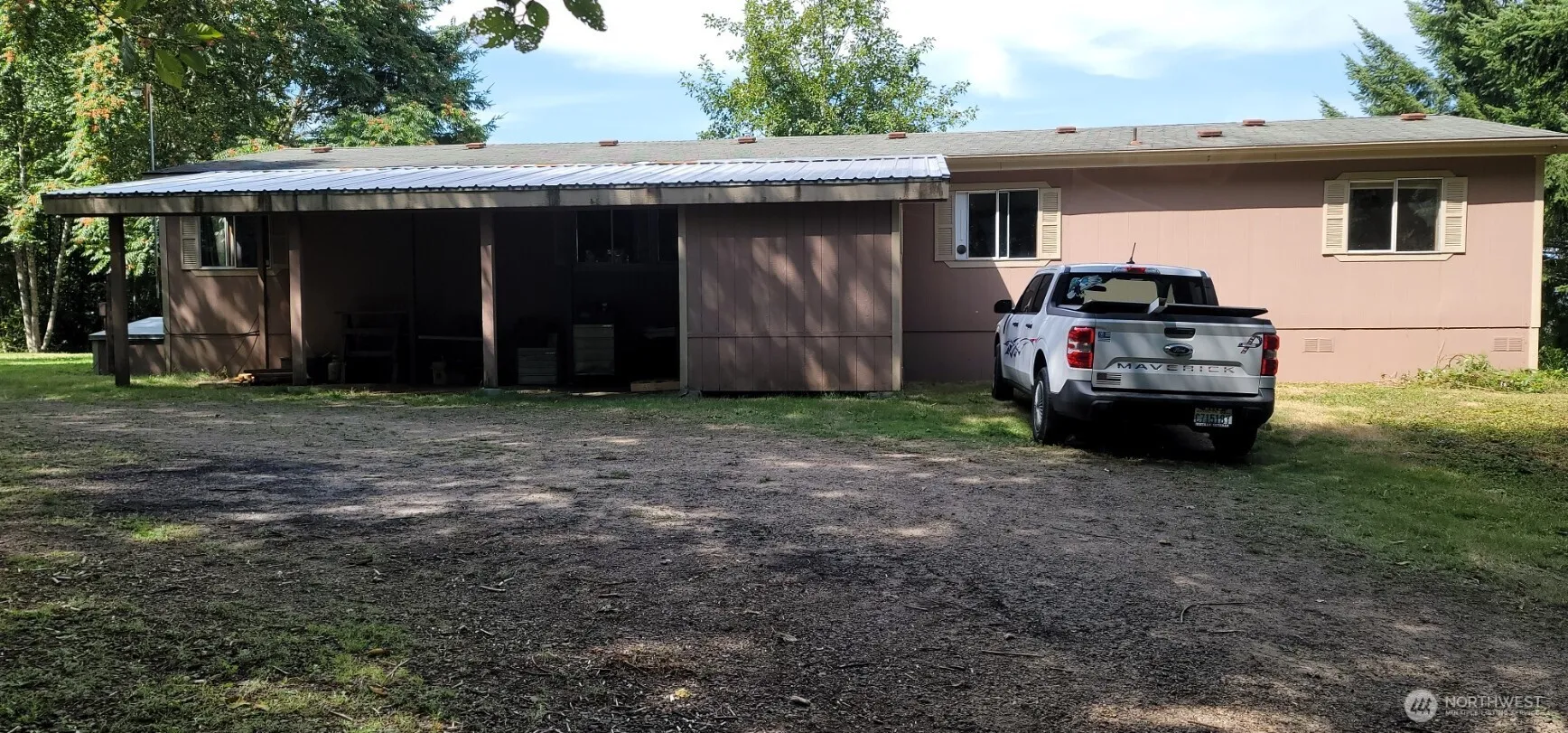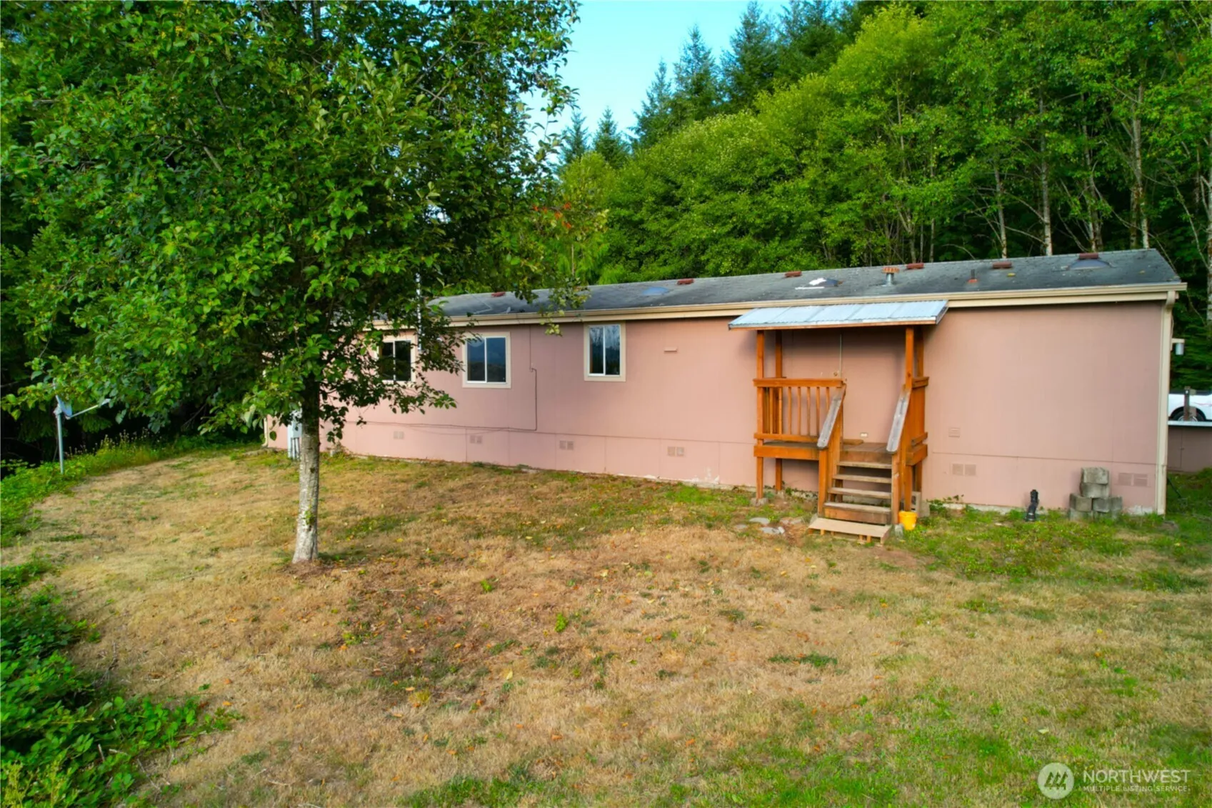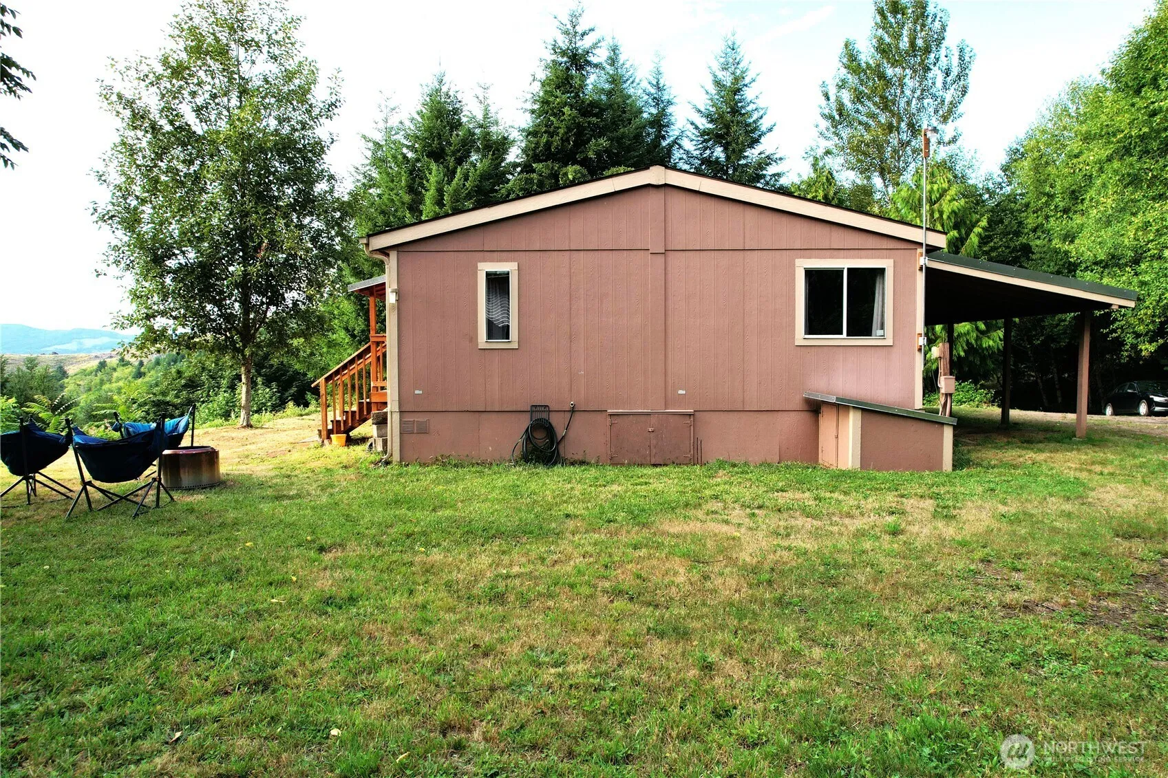 ESTATE SALE – PRICED $55,000 BELOW Tax assessed value. Secluded by your forest the home is 1650 Sq. Ft. with 3 bedrooms and 2 baths with a large flat yard area for parking cars, boats, RVs, a garden, pets, or playground. The covered carport with storage area and mud room at the back door provides weather protection. The shop has a covered area in front to work on cars, etc. keeping dry. The home was being remodeled giving it a great open floor plan, when the father passed thus some flooring, trim, one room sheetrock needed to complete the remodel. The homesite is elevated and the land terraces down with paved road access, perfect to split off 2 acres +/- for a 2nd homesite or to sell. 12 miles from I-5 on private dead-end road. GREAT VIEWS