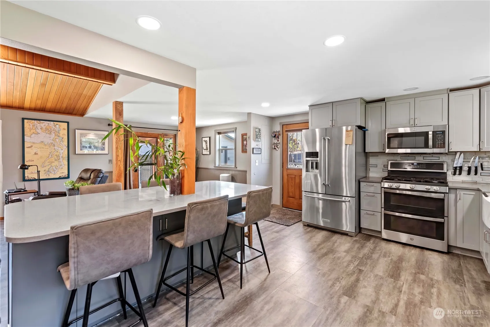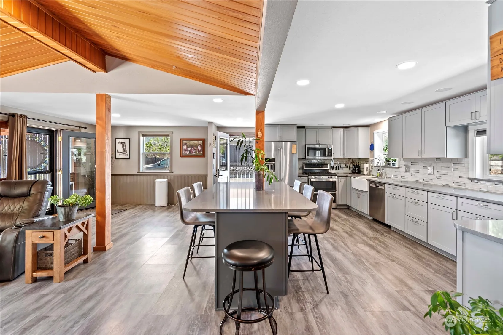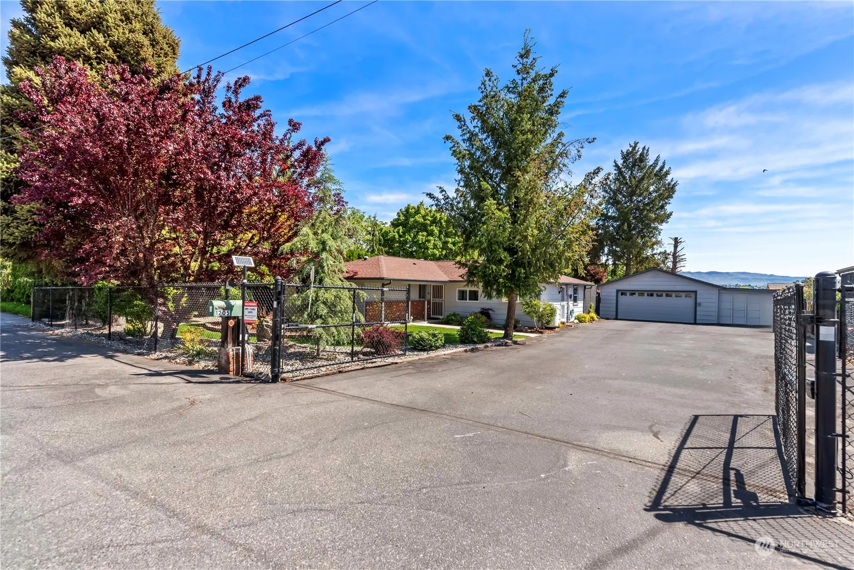 Beautiful manicured one level home situated on a completely private 1/3 acre. All newly remodeled kitchen with gas cook top, center island & updated baths. Great room with wood stove and vaulted ceilings and LVP flooring. Covered deck and large patio, detached studio currently used as an office. Security on all buildings, fully gated yard including electric gated entry. Fire pit, raised garden beds, sprinkler system on irrigation water with no HOA. 3 car garage (3rd bay being used for storage) Huge additional outbuilding. Large RV parking with 50 amp service. Quick 5 minute walk to the hospital.
