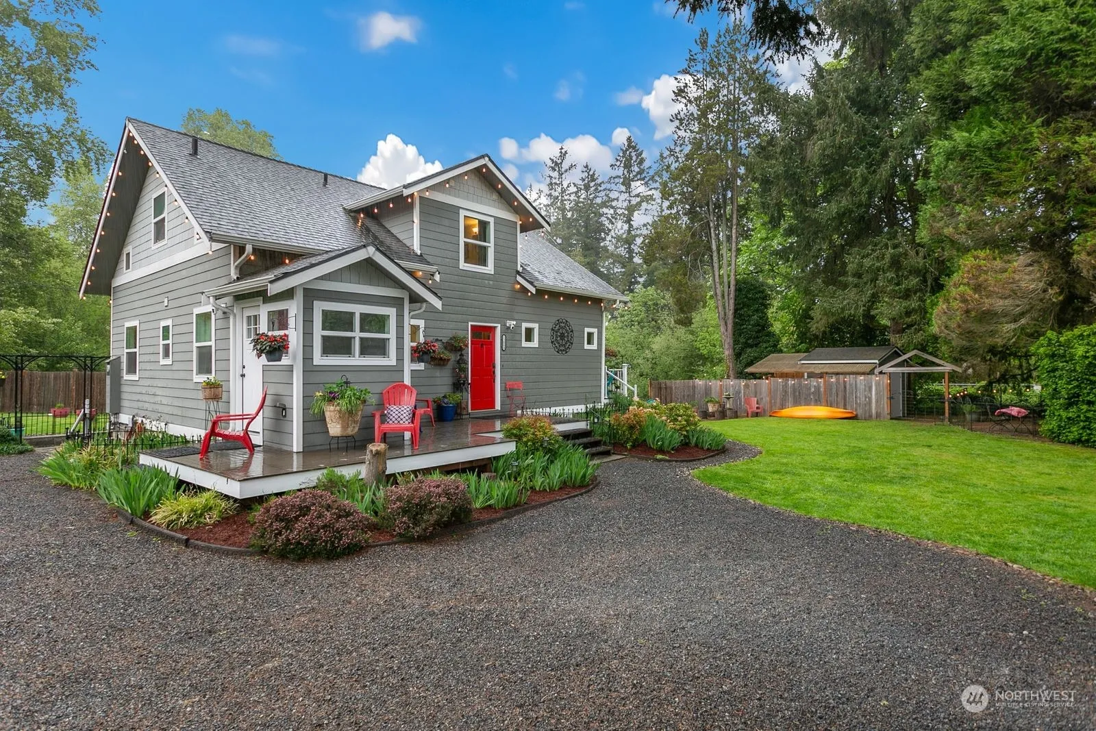 It’s difficult to express the magic of this timeless property. Creekside Cottage is a picturesque shy acre Bear Creek Waterfront estate nestled in a parklike setting. Close to Woodinville Wine Country, Redmond and Kirkland this 3Bdrm +3Flex Room, light filled classic farmhouse takes in nature’s display from every direction. The lower level has it’s own separate entrance, with living room area, laundry and bath suitable for generational living or passive rental income. Gracious garden cottage and lofted pine barn offer additional flex space for office, yoga, AirBnB. Enjoy relaxing on the expansive deck watching the wildlife or take your kayak and float down the creek. Life doesn’t get any better than this. Schedule your showing today!