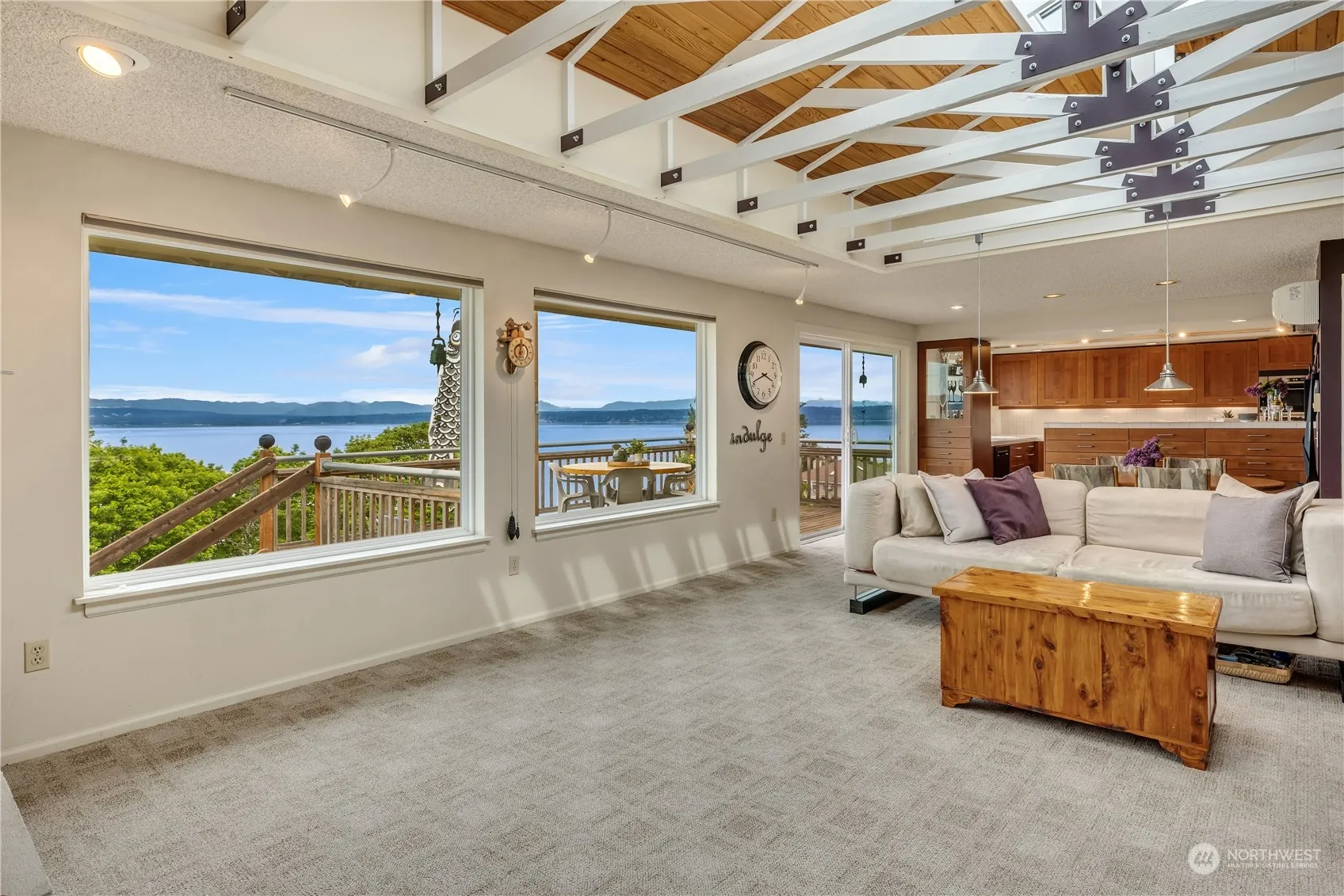 LOCATION! Situated right across from the water, this property offers expansive sound views, framed by the Cascade Mountains and the iconic silhouette of Mt. Baker. Enjoy in leisure activities with Country Club amenities offering 3 private beaches. Unwind in the hot tub, all surrounded by magnificent blooming gardens. Relax and unwind on one of the three viewing decks, ideal for entertaining. Inside, find comfort in every rm, each boasting a water view, a vaulted ceiling of glass, and two cozy wood-burning fireplaces. Enjoy main-level living with separate bonus and guest space downstairs. Embrace sustainability with solar power. “Beach 3” – Private sandy beach is just a 5-minute walk from you back door for swimming and kayaking. New septic!