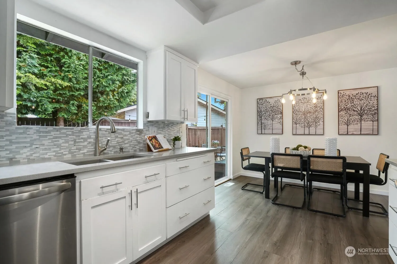Experience suburban serenity at this Rose Hill cul-de-sac retreat! This remodeled rambler fts a spacious double fenced lot + an attached 2-car garage. Open living room, w/ a wood-burning fireplace, flows into the remodeled kitchen/dining area + an expansive backyard/patio for seamless indoor-outdoor living. The primary BR offers a serene escape connected to the full hallway BA, while 2 additional BRs provide versatility. Large mudroom/utility room w/ extra storage + a powder bath completes the layout. Upgrades include new paint, landscaping, flooring, light fixtures + appliances. EV charging capability + hot tub hook-up. Walking distance to dining, shopping, parks, schools + transit. Located in the LWSD. Great opportunity to extend SF!