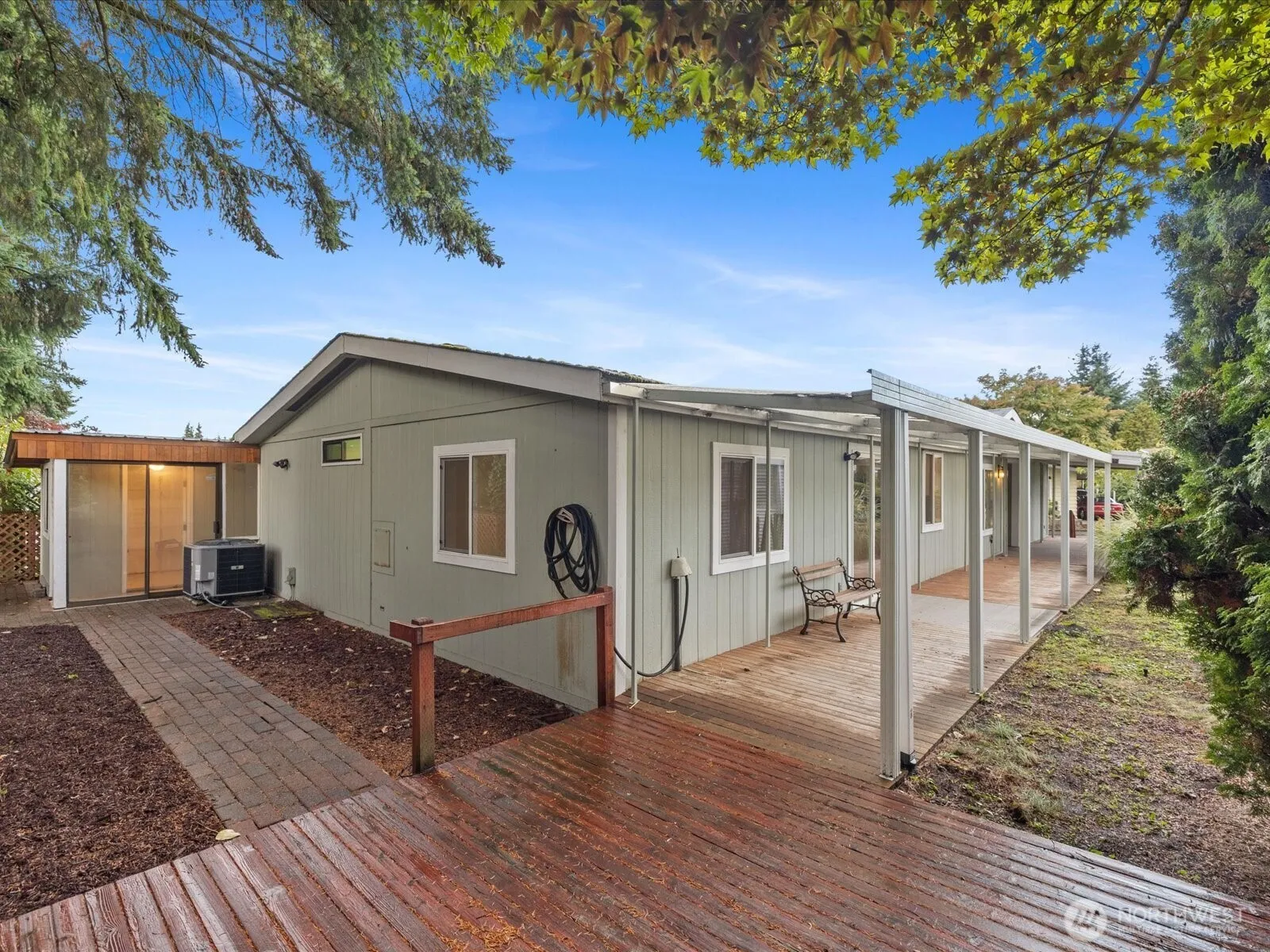 Welcome home to Kloshe Illahee, an active 55+ community near shopping, dining, freeways, & medical services. This manufactured home lives like a stick built. There’s tons of storage space inside, plus a workshop & exterior insulated storage room outside. Enjoy the updated kitchen with a newer stainless steel Kenmore refrigerator, dishwasher, Frigidaire oven & granite island countertop. The large covered outdoor space provides year round use & carport accommodates three deep under cover. Spacious lodge-style clubhouse amenities include a tennis court & outdoor pool, indoor hot tub & sauna, theater & game room, fitness center & pool table. Mingle with your neighbors at Tai Chi, chair exercise class, card games, bingo, bunco, pinochle & more!