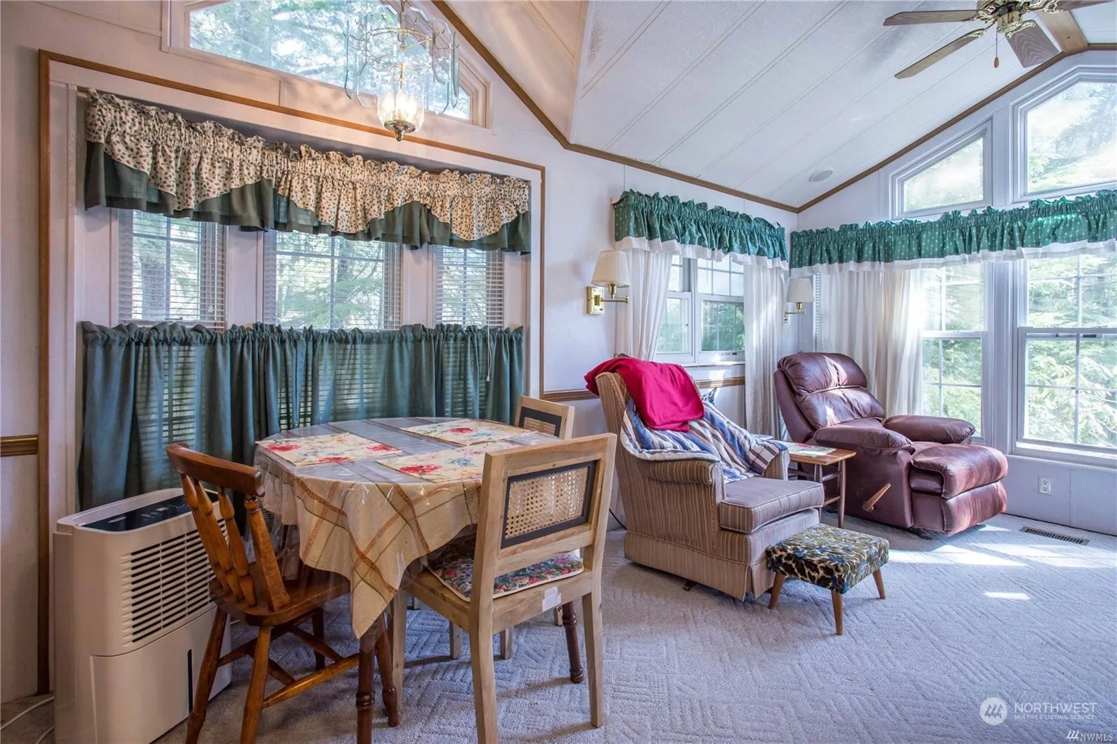 Beautifully maintained park model W/add-a-room. In desirable Div 7. Over 1 acre lot that gets both sun and shade. There are plenty of trees sprinkled around the property. This home has a 2018 metal roof. Fully skirted with vaulted ceilings & plenty of windows providing a lot of light. Bedroom is equipped w/ wardrobe cabinet & closet. Big kitchen with plenty of storage plus washer and dryer. Sliding glass doors and add-a-room lead to covered deck. The add-a-room leads to patio. The Glen is zoned recreational & limited to 120 days a year. The Glen has all the amenities two pools, hot tub, two club houses, tennis courts, playgrounds, library and more. Gated with 24 hr security.