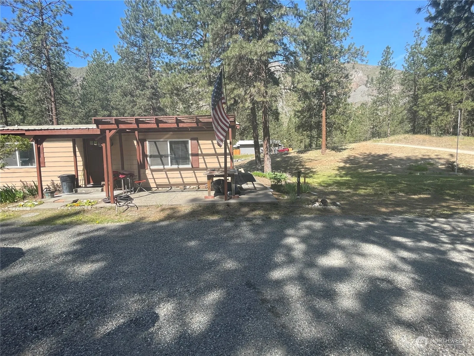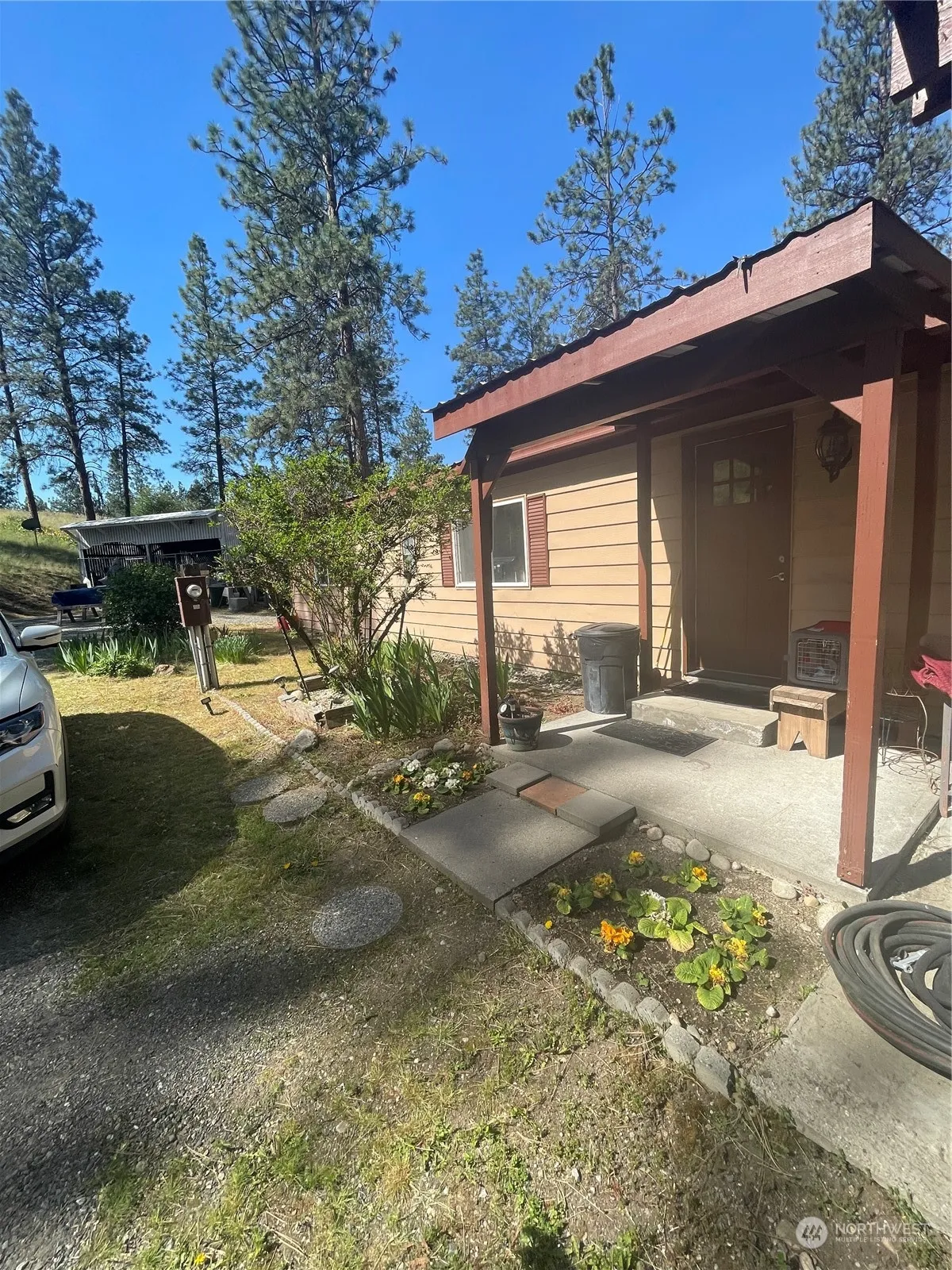 Appealing quiet home & tie downs installed. Newer laminate flooring & updated counter-tops in the kitchen with pantry and a dining area plus kitchen eating area. Walk into home freshly painted walls, nice views out the windows in your living room. Nestled on the one acre you have plenty of garden spade & parking. Chicken coop, greenhouse, larger shed with access to electricity, home has both front and enclosed back porch and useful areas on this quiet location with the buffer of grassy areas and pine trees. 2 car detached garage enclosed back porch area. Pinecrest Water Assoc. for domestic & irrigation. The vacant parcel has water meter ready for hookup. Frost free pipes. GFCIs installed & water tank piped to outside for safety.