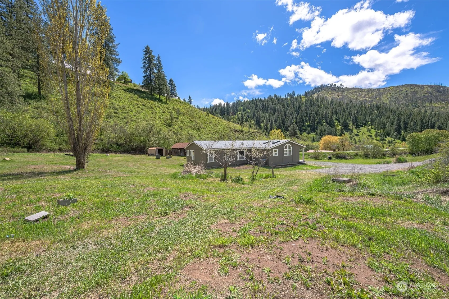 Cashmere countryside charmer nestled on a quiet 2.75 acres. The rolling hillsides of balsam root adorn this triple wide 3 bed/2 bath home with newer roof, flooring, light fixtures, and exterior paint. Entertain several guests in your large kitchen with island, skylights, & breakfast nook or have a formal meal in your dining room. Enjoy the sunshine streaming through your living room windows—highlighting the privacy and tranquility of Olalla Canyon. The large primary bedroom is complete with dual vanities, soaking tub, & shower and the home also features a laundry room with folding table. Need a shop/garage, RV parking, or desire a pool? Plenty of room for all your toys, hobbies, or farm animals! Selling As-Is.
