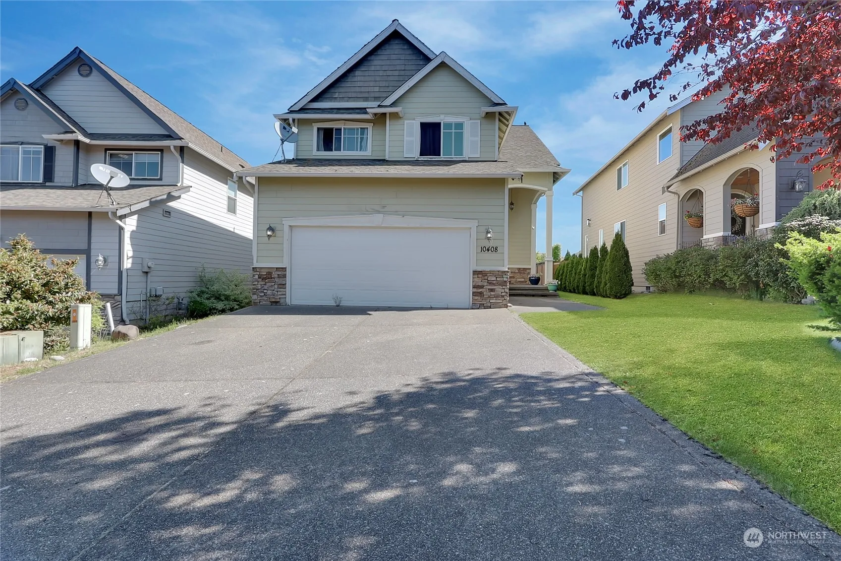 What an opportunity to build equity in Sky Island’s Panorama Heights neighborhood! This home has a great floor plan with the kitchen opening to dining & living room. Builder upgrades include white millwork, 6 panel doors, tiled floor in entry through the kitchen, gas fireplace in living room & outdoor patio. Large windows take in the stunning views of Sumner Valley. Primary suite is large with walk-in closet and ensuite. 2 more bedrooms plus full bath round out the upstairs. A second level deck connects to both the loft & master – morning coffee w/ the sunrise! Close to freeways, shopping & amenities. Community park has sport court & trails. With just a few simple updates, this house will polish right up!