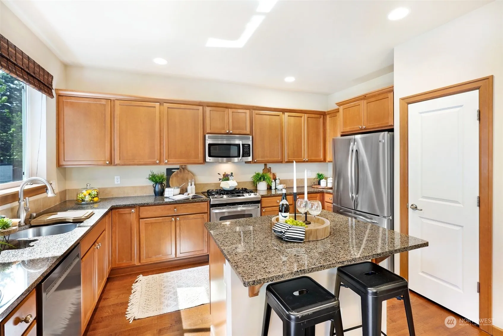 Convenience meets comfort in this beautifully maintained Mukilteo home; just moments from local amenities & attractions! You are welcomed by gleaming hardwood floors guiding you through the main floor into the home’s great room. The kitchen offers granite countertops & SS appliances. Step out of your living space & enjoy the afternoon sun in your low-maintenance backyard w/ a turf yard & covered patio! Upstairs, you will discover the spacious primary suite, 3 additional bedrooms, hall bath, & convenient laundry room. Find an abundance of storage in the spacious two-car garage w/ added storage shelves. With easy access to Boeing, Paine Field, local parks, and the coveted Mukilteo School District, you will love this home’s premier location!