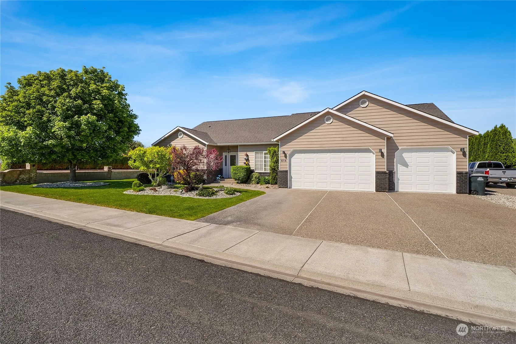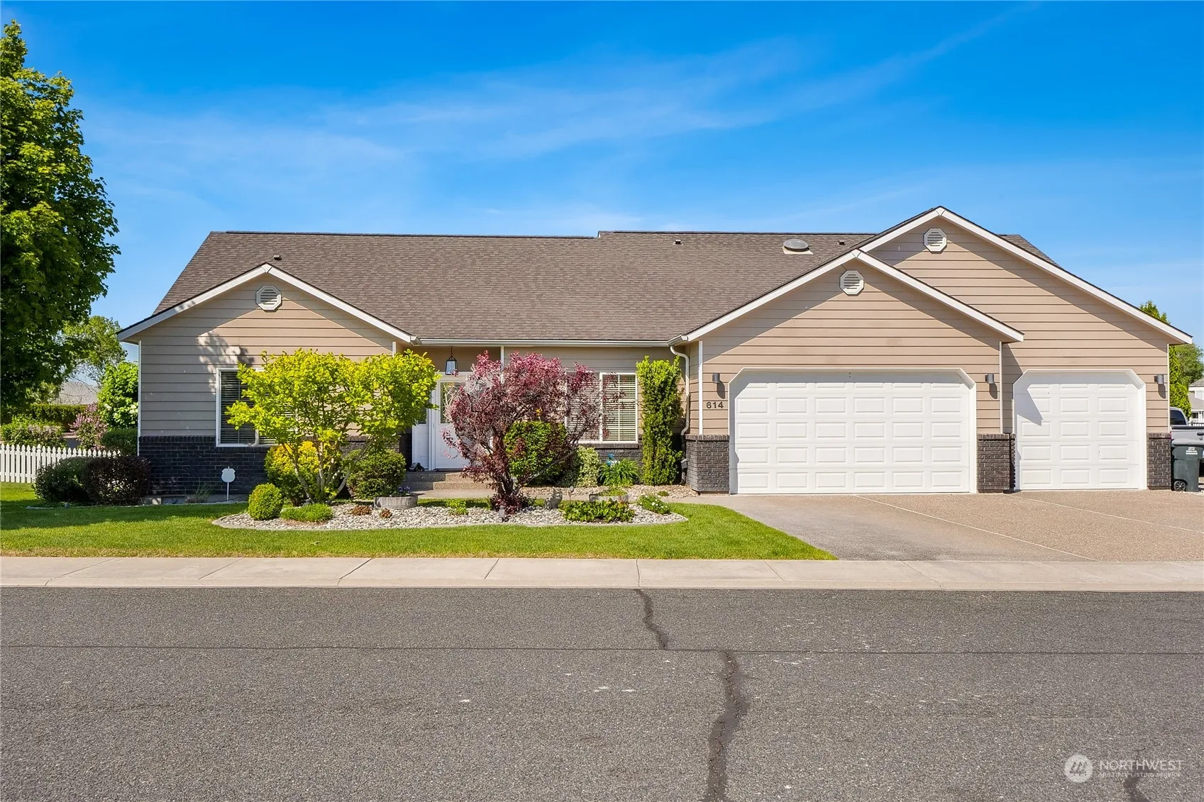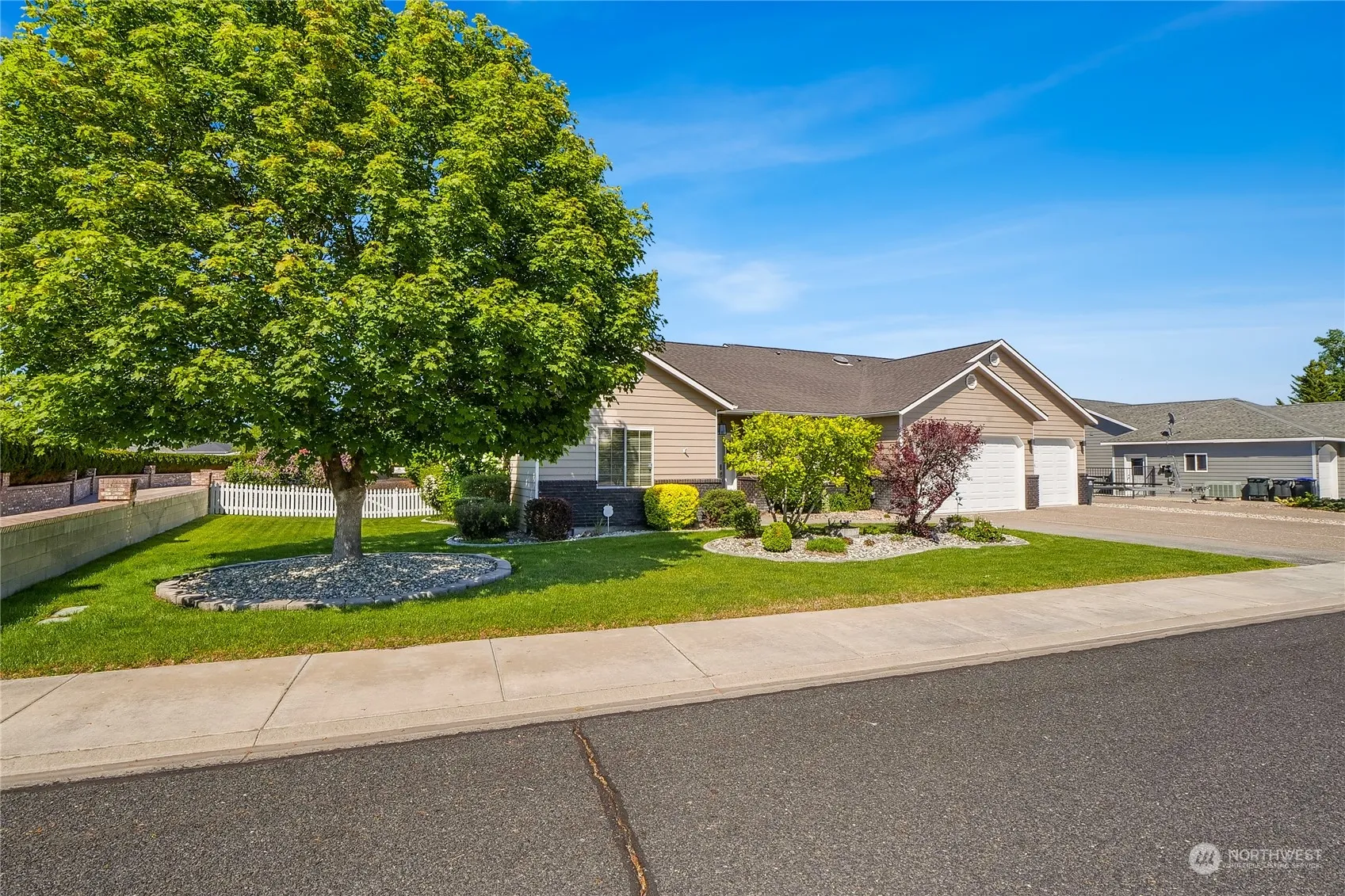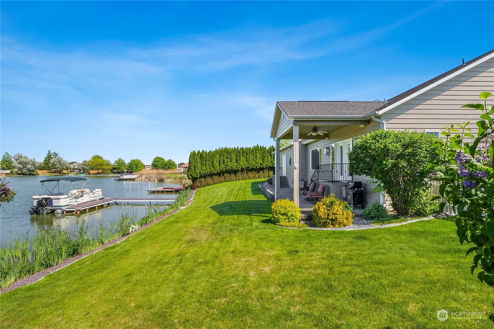 Waterfront living at its finest with this spacious open floor plan rambler on 113′ of private waterfront. Enjoy the versatile ceramic tile & beautiful hardwood flooring throughout the home, as well new quartz countertops in the kitchen, baths & laundry! The living room features a vaulted ceiling, 3 sided fireplace, large windows with views of the lake and open kitchen w/new ss appliances & insta-hot water! Primary suite is large enough for a second living set, ample storage in the walk-in closet, a jetted tub & walk-in shower in the bathroom! Delight in the serene views of your private dock nestled in a secluded cove from the covered patio & fenced backyard. Full RV Hookup, 3 car garage w/extended 26′ third bay, complete w/attic storage.