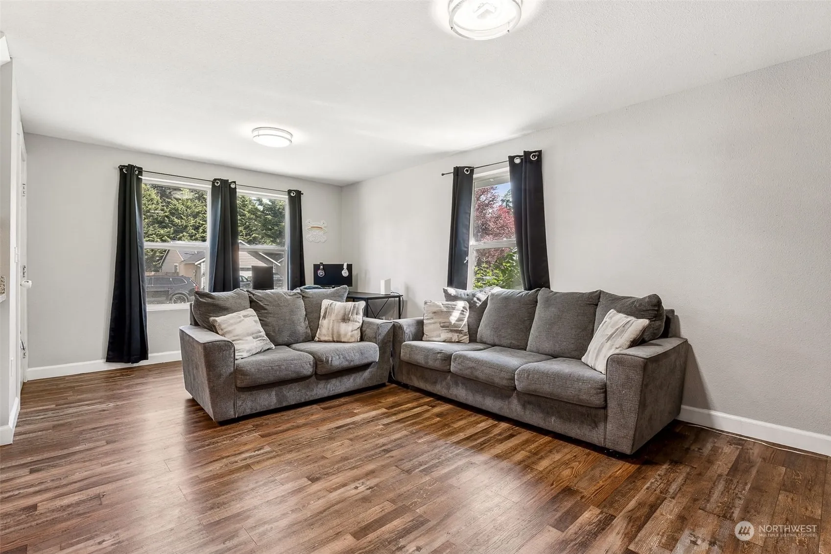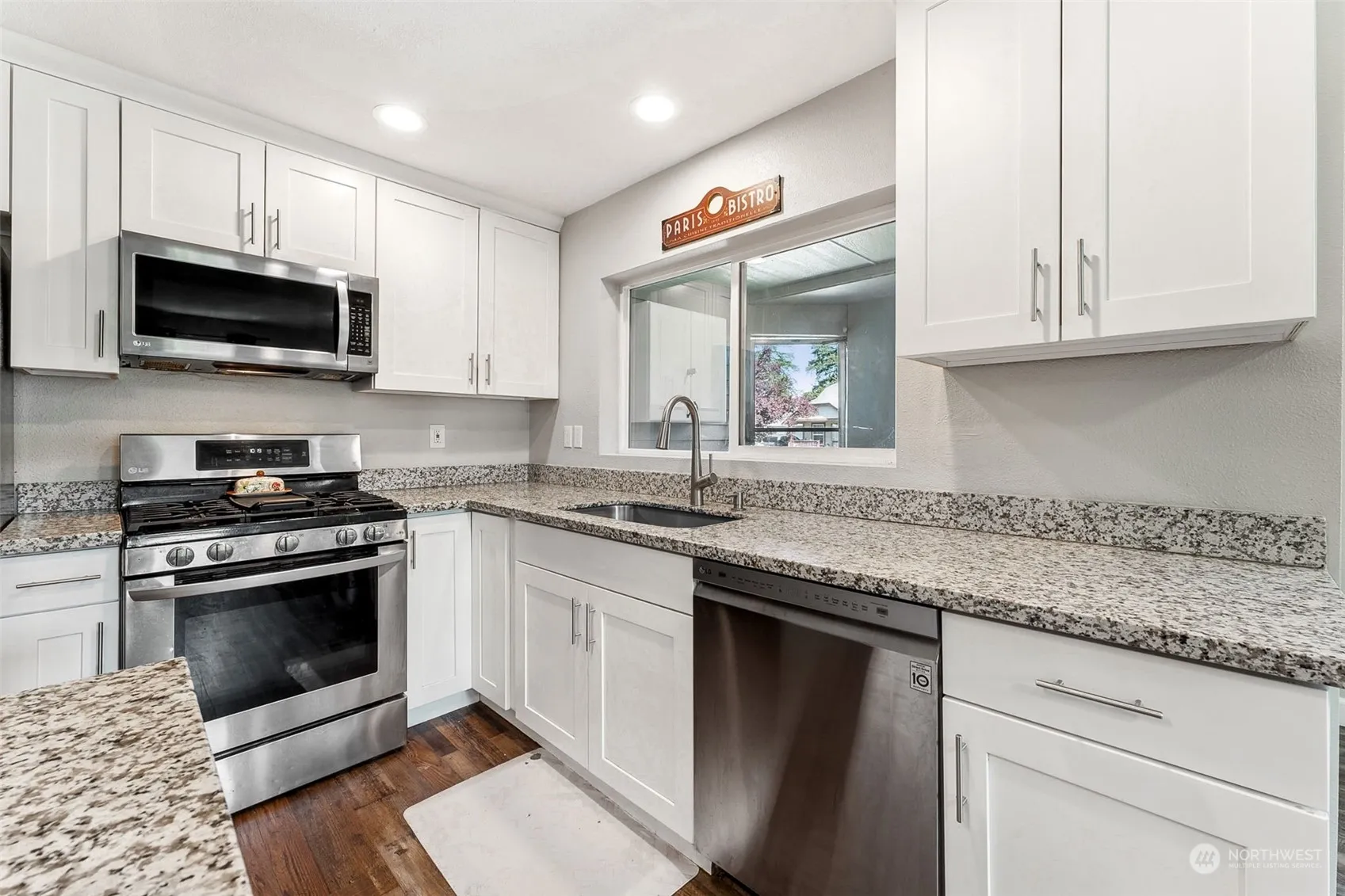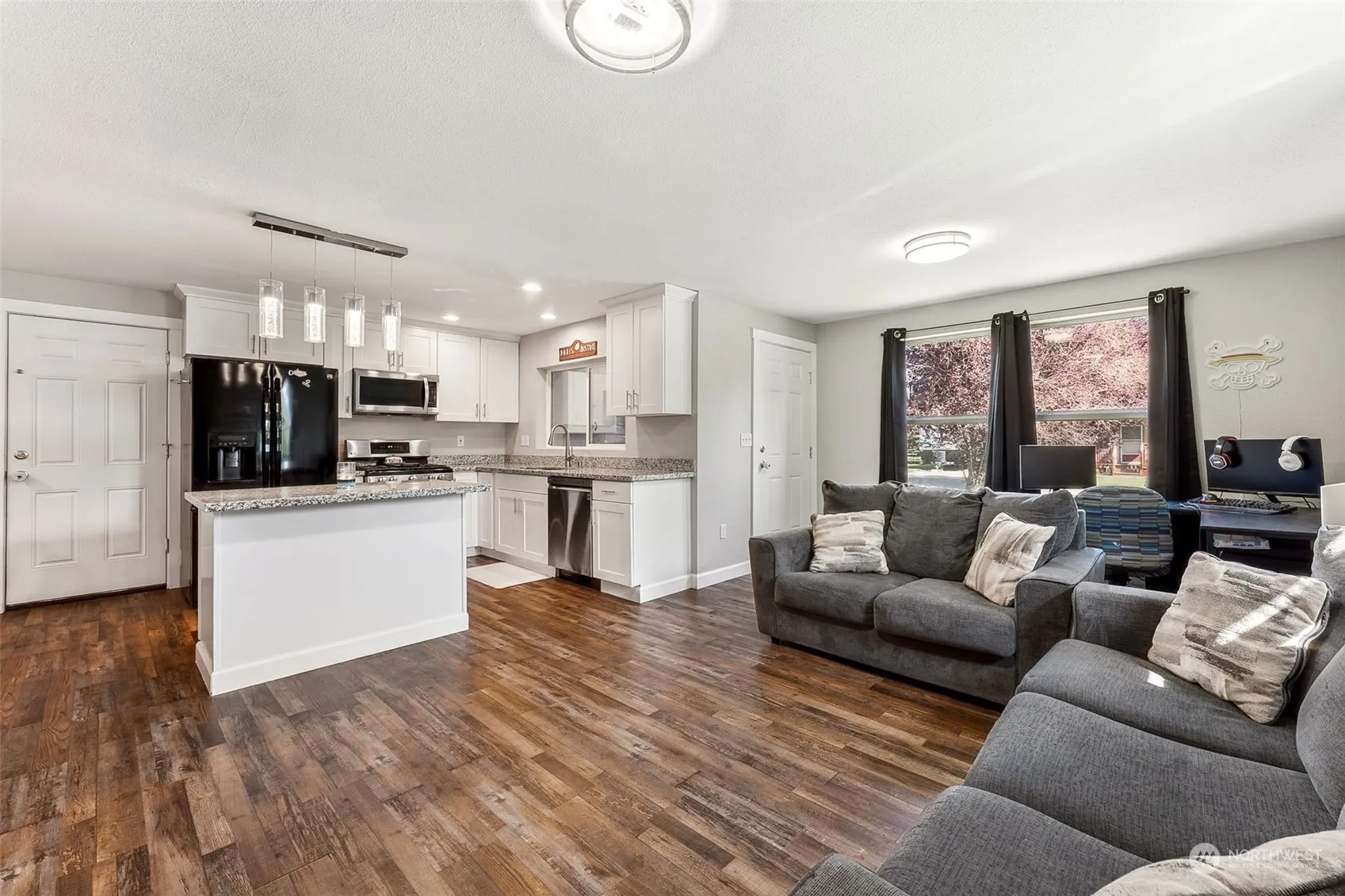Lovingly maintained rambler in the Kingsview community situated on a quiet cul-de-sac! This open floorplan offers upgrades throughout! Bright kitchen with granite counters, white shaker cabinets, large island W/barstool seating, pendant lighting, and appliances that STAY! Formal dining space off kitchen and large living room! 3 oversized bedrooms and 2 full, updated bathrooms with newer vanities. Laminate hardwood flooring throughout the home, storage closet in hall! Large, private, fenced backyard complete with covered deck and garden space! Within walking distance (~1 mile) to downtown Yelm with shopping, schools, entertainment, golf, trails, & parks! Ideally situated near JBLM, Olympia, and Lacey. NO HOA!