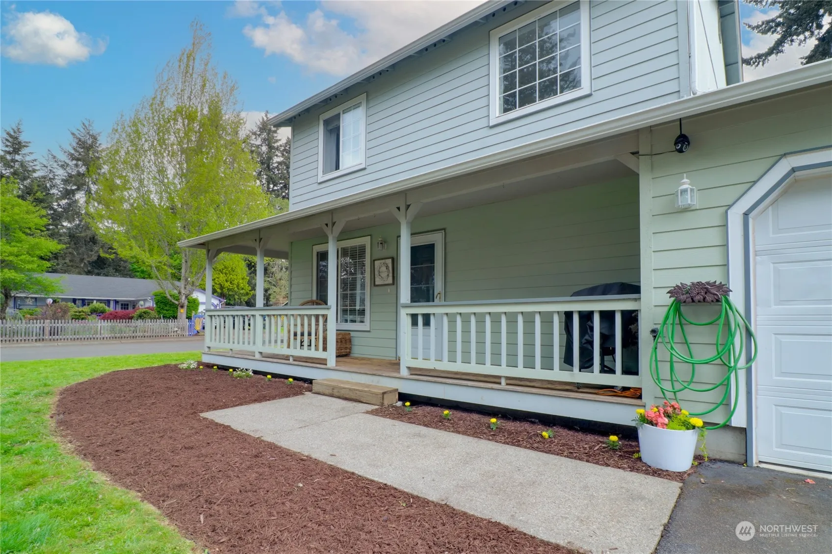 Wonderful home situated on large corner lot just outside of downtown Rainier. Country setting w/easy access to freeway, Lacey & JBLM. 3 bedrooms, 2.5 bathrooms. Kitchen w/pantry, giant sink & open to the dining room for easy entertaining. Bedrooms all w/walk-in closets. Inviting wrap around front porch faces treed property, great for peaceful & serene relaxation mornings & evenings. Giant backyard that is fully fenced w/RV parking, raised garden beds, outbuilding for storage & swing-set. Roof is newer & interior freshly painted. All appliances stay. Buyer/Buyer’s agent to verify all information to own satisfaction