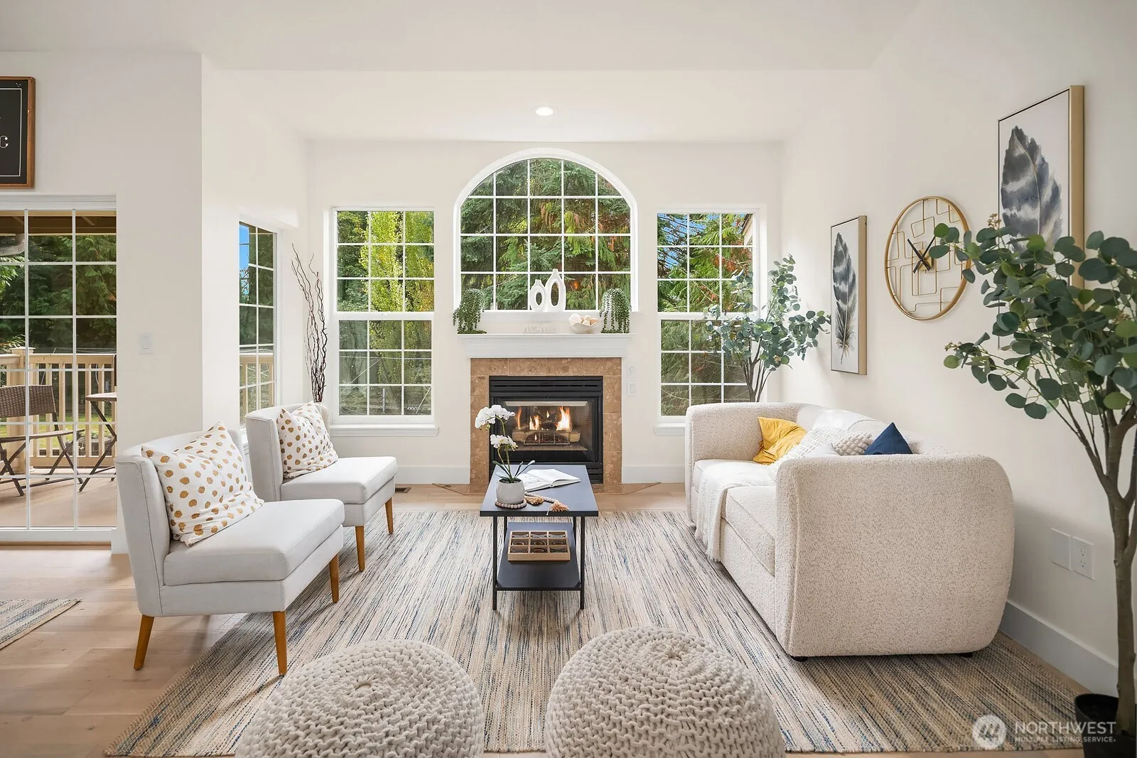 Immaculate and turn-key ready, this 3-bed, 2.5-bath end-unit townhome in coveted English Cove offers 1,743 sq ft of comfort and style. The main floor is filled with natural light, featuring vaulted ceilings and a primary suite with dual walk-in closets and private balcony. The kitchen opens to dining and living areas for seamless entertaining. The lower level hosts two bedrooms, a full bath, and a spacious living area that extends to a private patio. Recent updates include fresh paint, flooring, lighting, water heater, and newer furnace. A 2-car epoxy-finished garage adds ease. Enjoy LWSD schools, community amenities, and a prime location near 520, Marymoor Park, trails, dining, and future Light Rail.