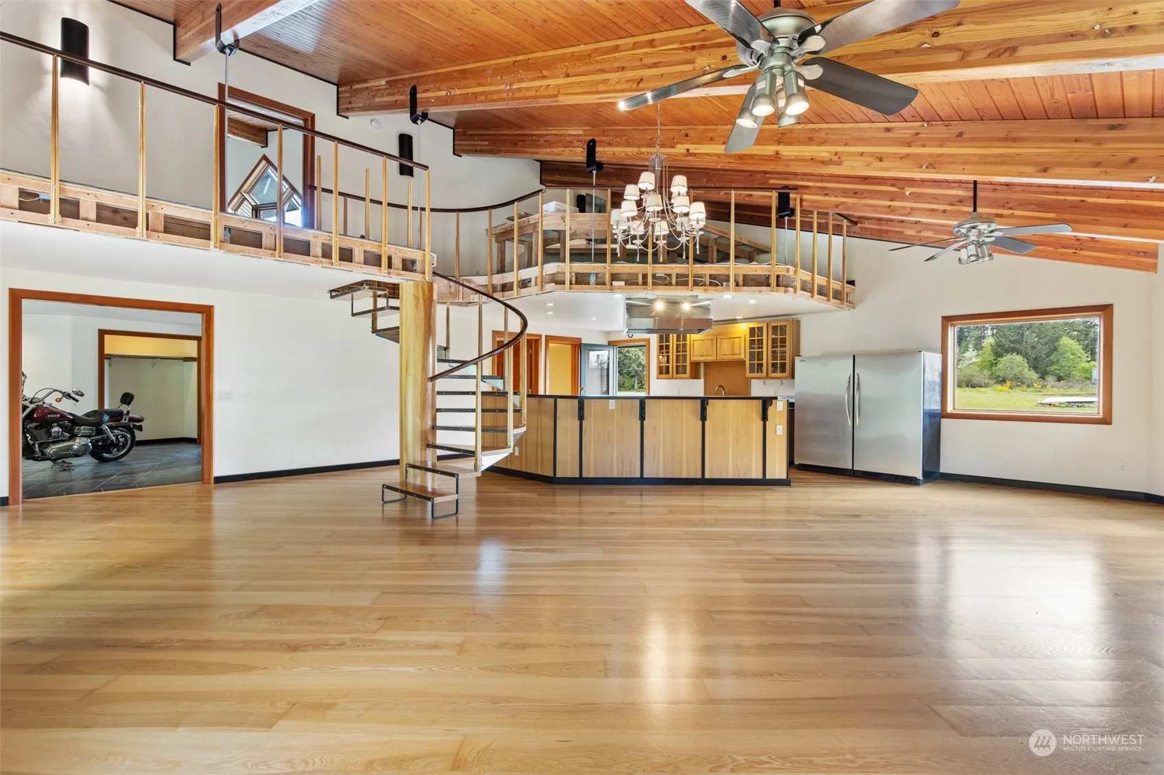 Unique custom home with Deschutes River in your back yard and part of 7 acres. Home was built as custom home and features sprawling main floor with vaulted ceilings, open kitchen and huge living room with fireplace. On other side of home, there is open bonus space, theater room, 2 additional bedrooms and bathroom. Primary is on upper floor with loft space, large bedroom complete with in-room spa tub, huge walk in closet and custom shower in primary bath. Huge shop with two different entrances can be used for storage, RV parking, shop or work. Shop is over 1500 SF! Many custom touches like metal roof and grand foyer entry. A few finishing touches and this home is nothing like you will see on the market!
