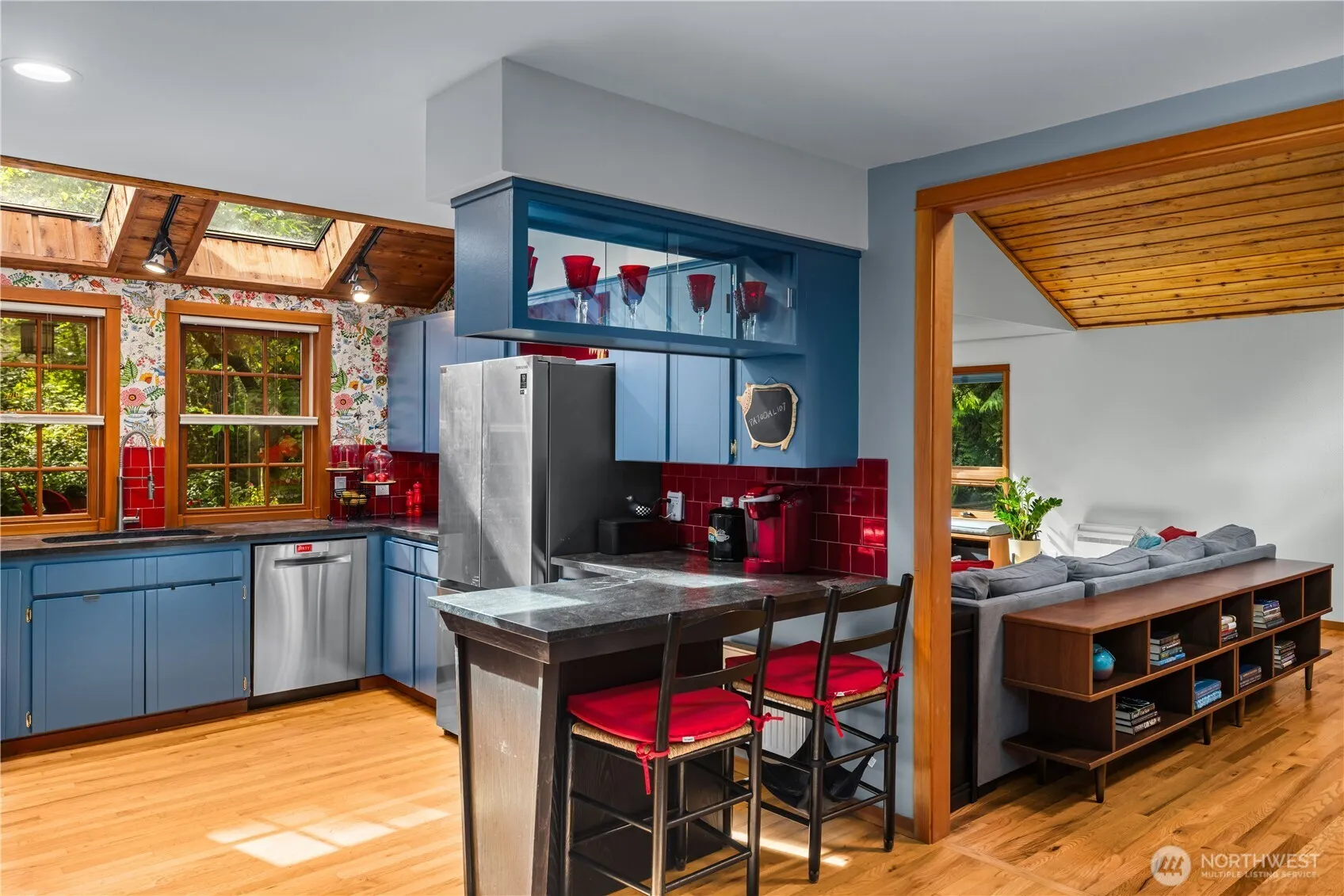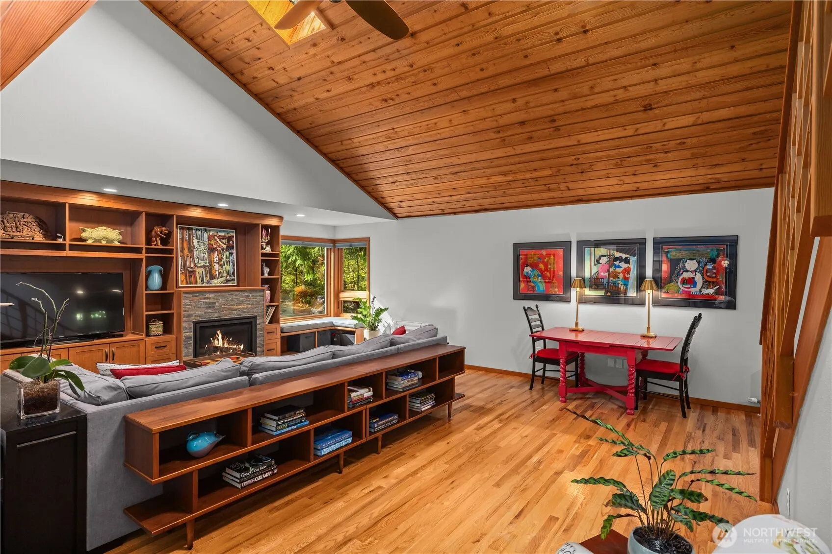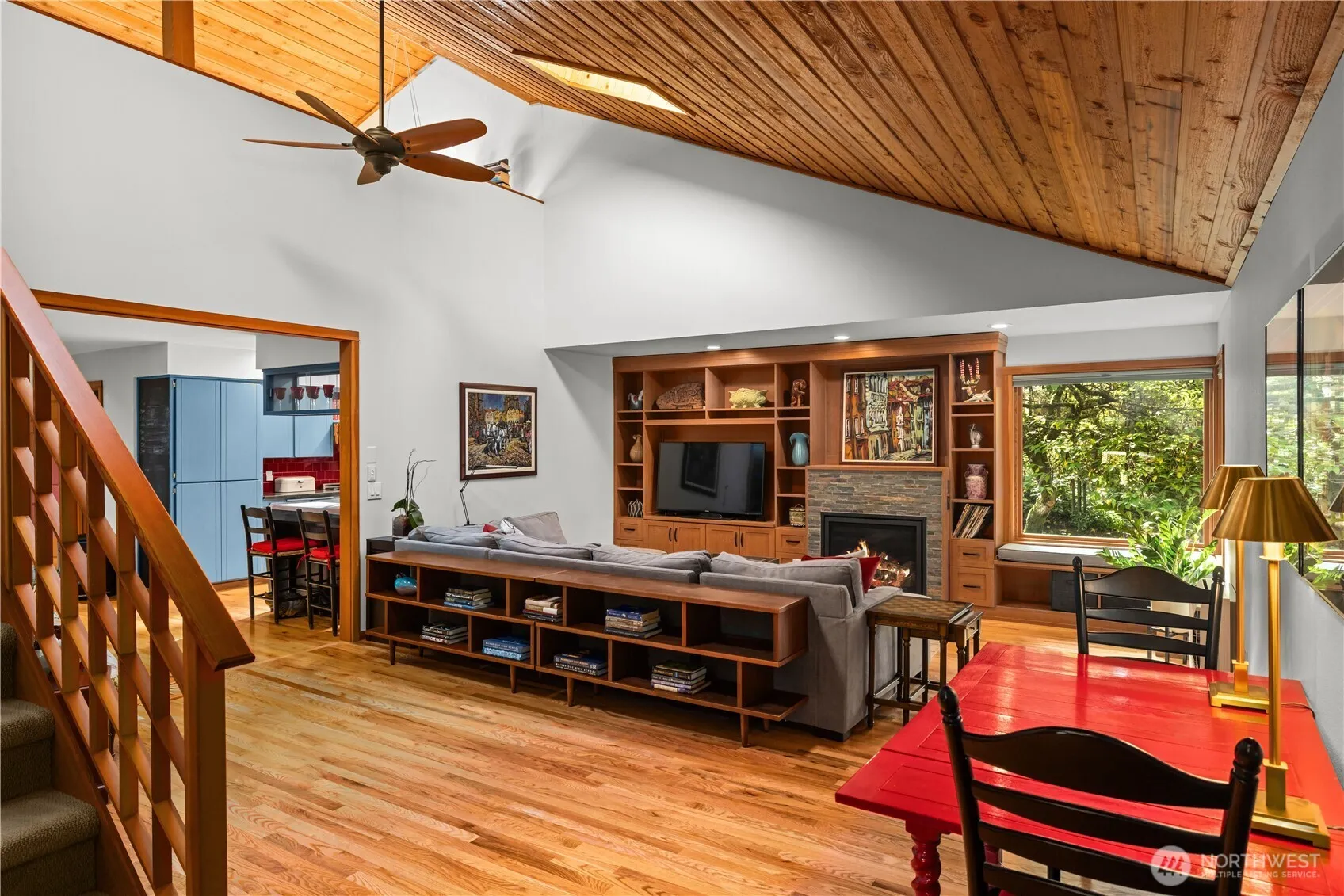 Experience refined living in this NW Contemporary retreat, surrounded by soaring cedars and vibrant rhododendrons. The primary suite offers spa-level indulgence with a soaking tub, rain shower, and private sitting room/office. Superior craftsmanship shines with custom woodwork, fir doors, and gleaming hardwoods. Recent additions include an expanded living room with built-ins, a gas fireplace, new foyer, and whole-house generator. Vaulted ceilings and an updated kitchen create a grand yet inviting flow, complemented by multiple decks, two lofts, fully fenced yards, a two-car garage, and a brand-new heating system with AC and tankless water heater.