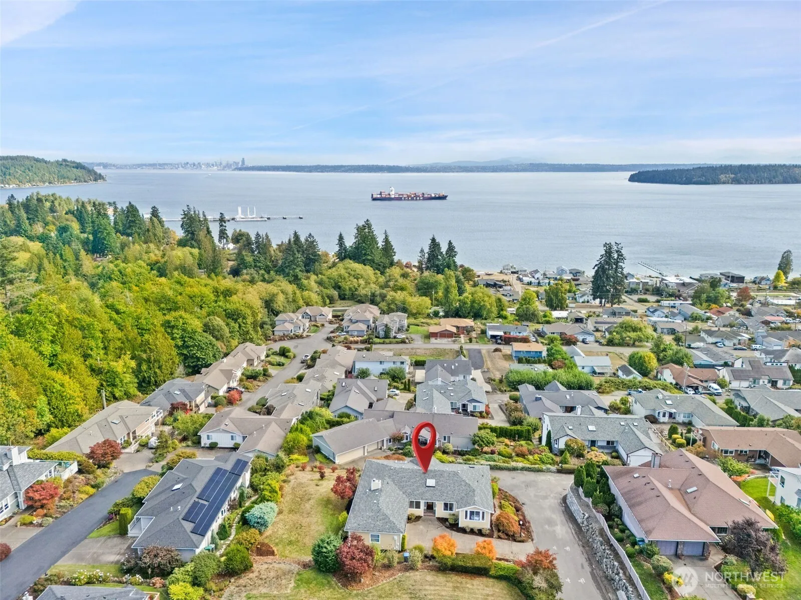 Expansive day-to-night views highlight this open-concept 1-story home with just under 2,000 sq ft. Enjoy stunning vistas of the Sound, Seattle skyline, Bainbridge, Blake Island, Mt. Rainier, Vashon, & the Cascades from the vaulted living room or the full-length deck ideal for entertaining or quiet mornings. The kitchen opens to a casual family room with fireplace & dining area. Home features 3 bedrooms, 2 baths, plus a versatile flex room currently used as an office. Nestled on a quiet dead-end street with mature landscaping, it’s a 5-min walk to the beach, dock, coffee shop, restaurants, & library, & only 10-min drive to the Southworth ferry/fast ferry. Updates include roof & siding (2012), A/C (2023), & newer fridge, stove, & dishwasher.