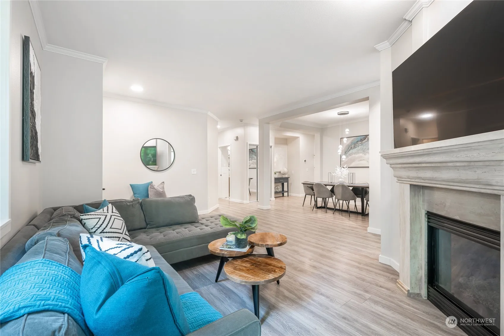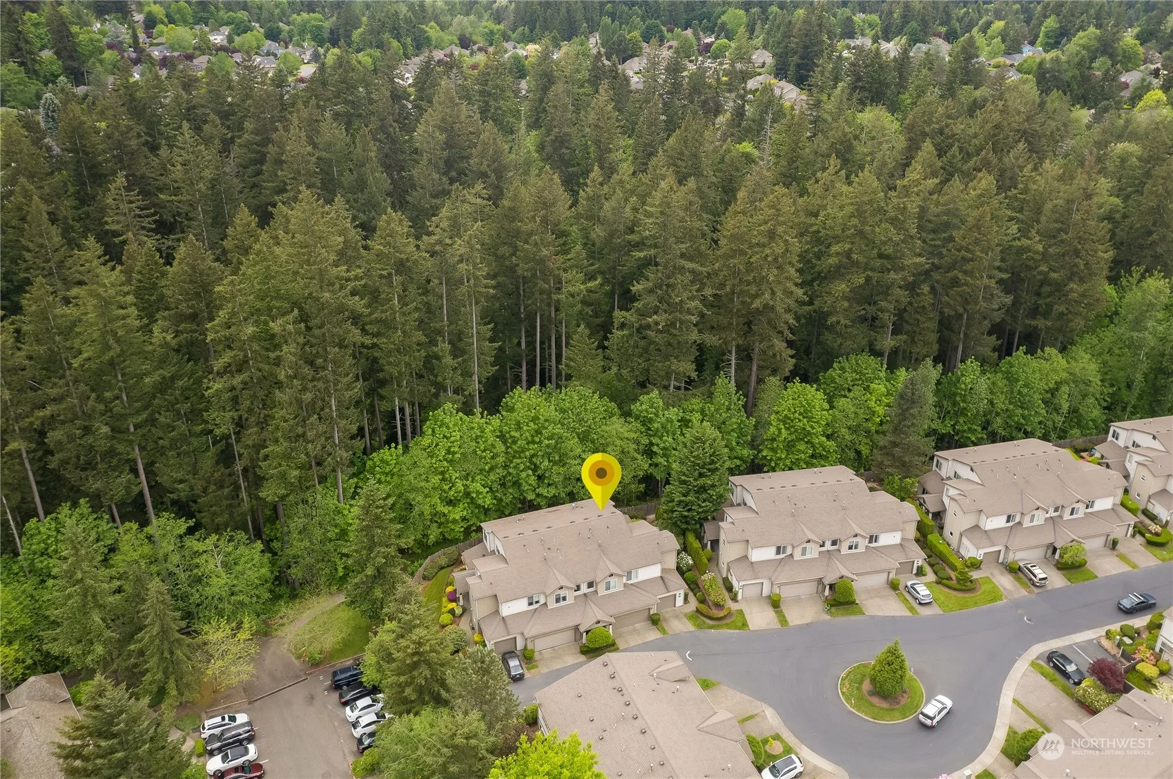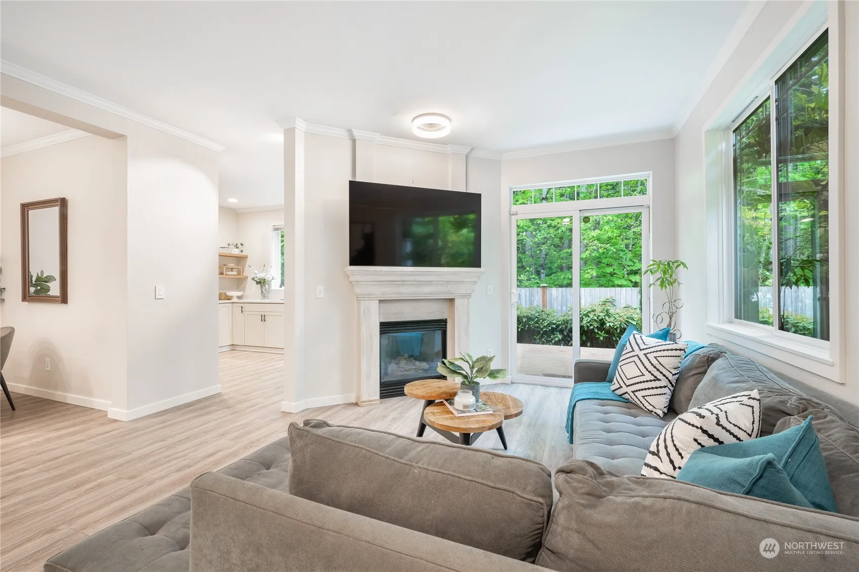 Gorgeous, remodeled Sammamish single-level condo! You’ll love the 9ft ceilings throughout and large windows. The living room boasts a gas fireplace and access to the deck with private park-like views. The beautiful kitchen features stainless steel appliances, modern finishes, and a pantry. The spacious dining room is perfect for entertaining! The luxurious primary suite includes a large bathroom and walk-in closet—an attached 1-car garage and driveway for parking and storage needs. Fantastic location! This home is located minutes away from shops, restaurants, and parks. Portable A/C in the garage is staying