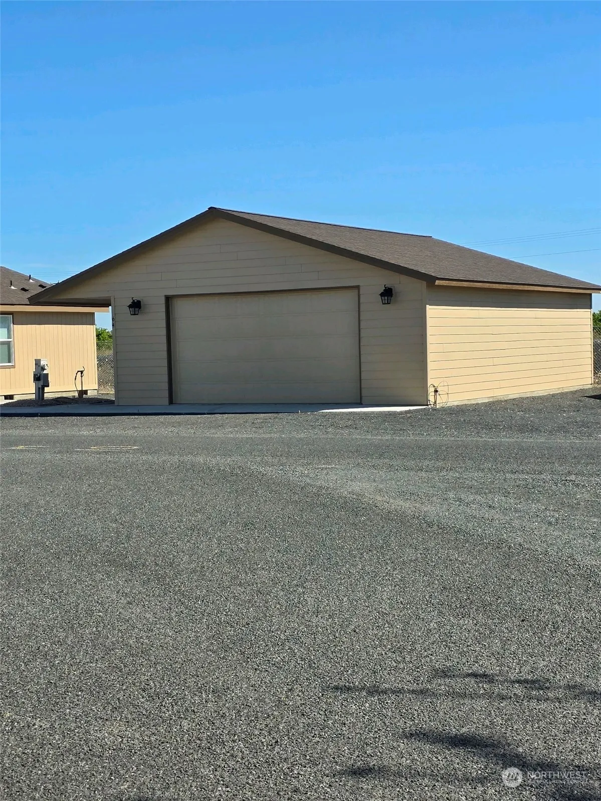 Nicely maintained & only used part time so this house is like new. Gated community on the Colockum Ridge Golf Course in Quincy offers swimming pool, hot tub, clubhouse, laundry facilities, shower facilities, horseshoe pits. Comfortable for full-time residence or easy to lock up & go. Open layout, vaulted ceiling, stainless appliances (all stay). Lots of cabinets in the kitchen plus pantry cabinets in the utility room (off the side entry). Spacious primary bedroom plus extra room (no closet) for office or guest bedroom. Main bedroom has 2 large walk-in closets, 1 with the stack washer/dryer (also included). Large patio area between the house and the detached 26 x 36 garage. HOA fees are $1100 per year PER LOT (63 & 64)