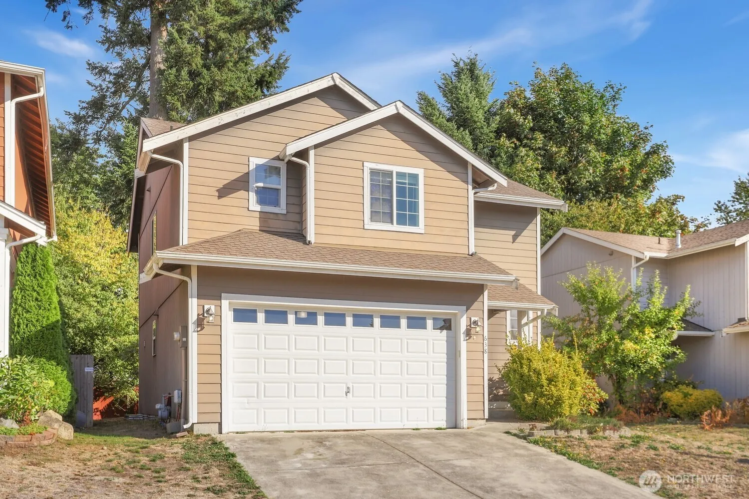 This charming two-story home offers a perfect blend of comfort and functionality. Enjoy a fully fenced, low-maintenance, mostly shaded backyard with a patio—ideal for relaxing or entertaining. The main level features a bright open-concept kitchen, dining nook with patio access, spacious living area, and a convenient half bath. Upstairs, find three bedrooms and a laundry room for added ease. The primary suite boasts a walk-in closet and private ensuite with a separate soaker tub and shower. Two additional bedrooms share a stylish Jack-and-Jill bath with dual vanity. Complete with a two-car garage and tasteful, neutral finishes throughout, and a convenient East Bremerton location, this home is move-in ready!
