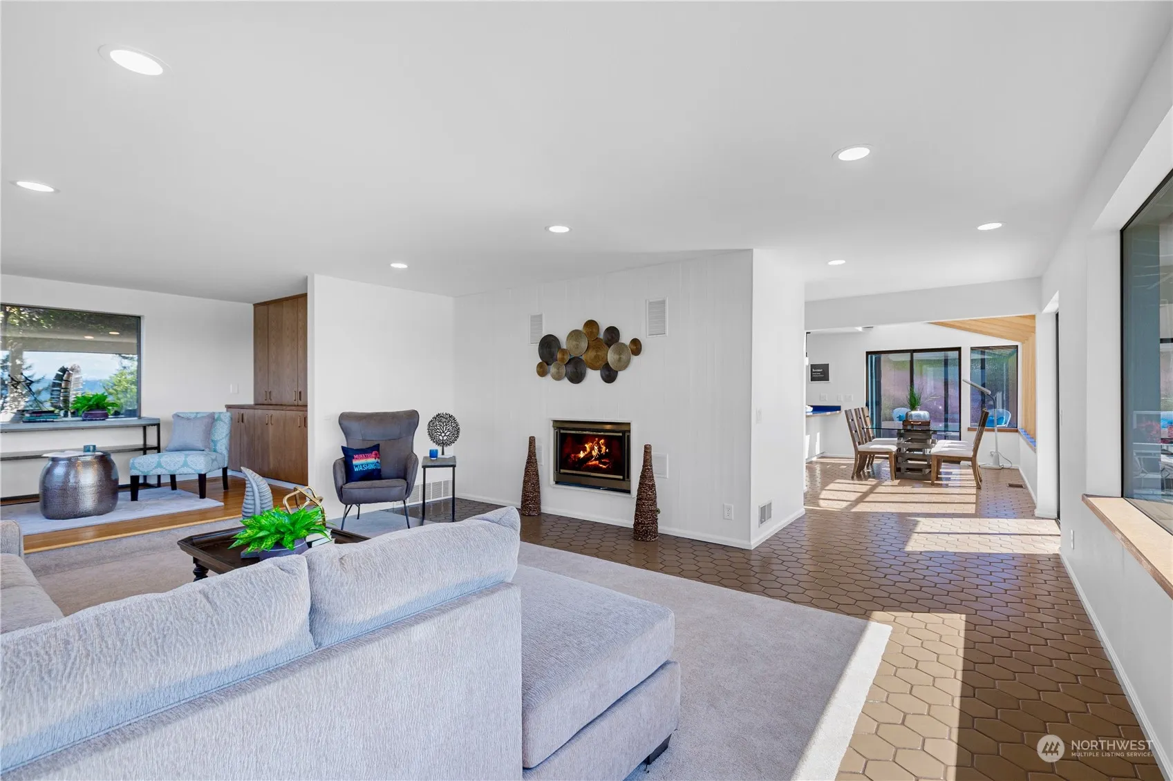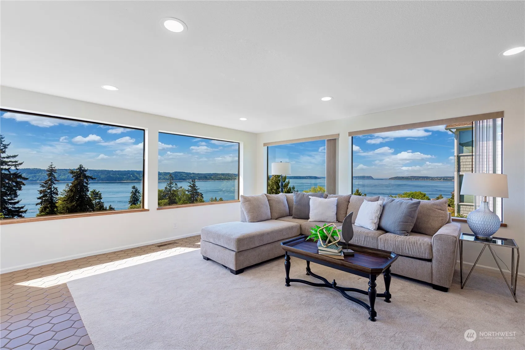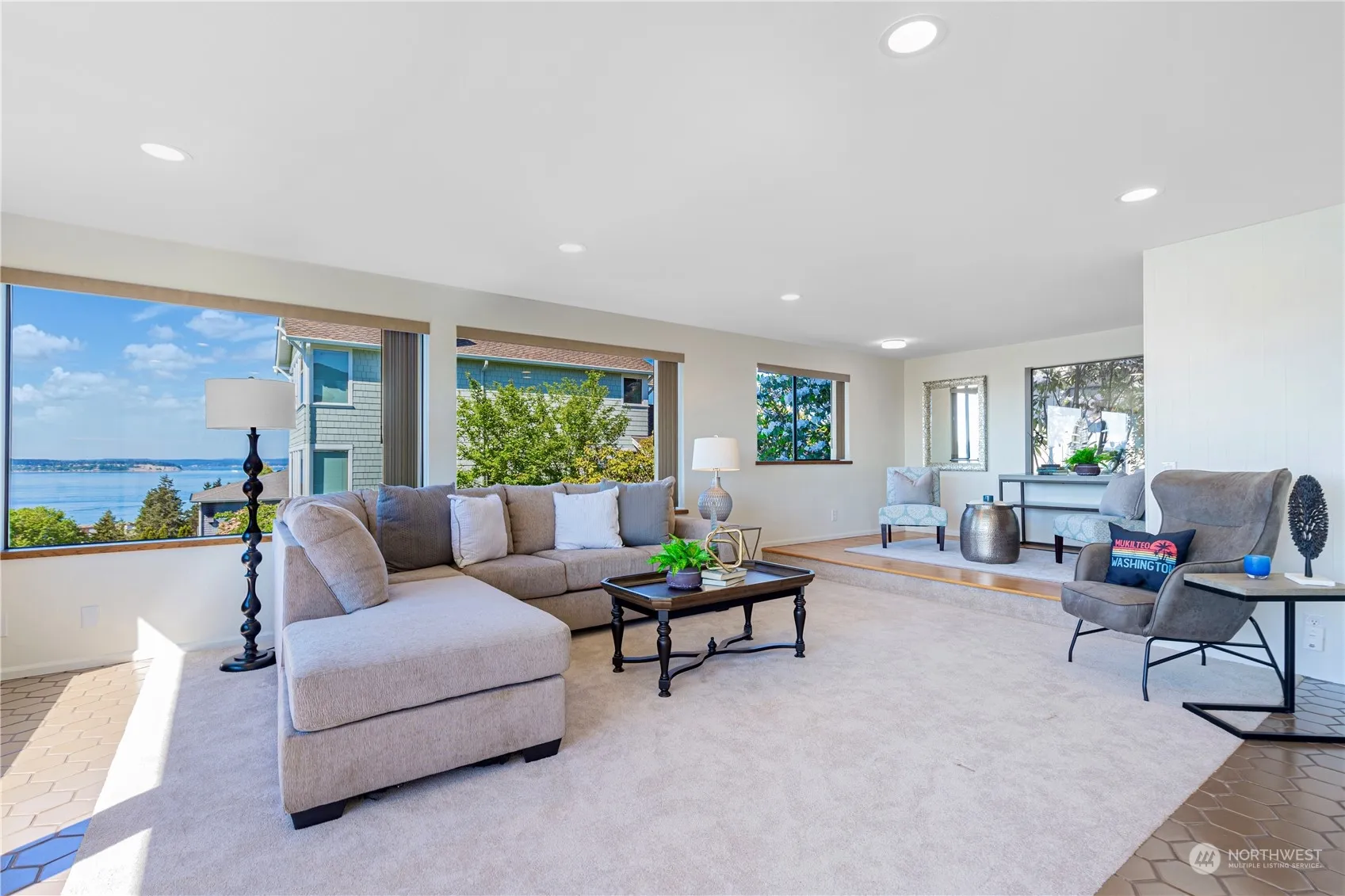Stunning views of Puget Sound, Olympic Mountains, vibrant sunsets, and ferries enhance this contemporary Pacific Northwest home on .37 acres with lots of parking. Enjoy panoramic vistas from nearly every window, including a mother-in-law unit. Vaulted ceilings lead to a spacious deck, perfect for enjoying breathtaking scenery. The sunlit living room features a cozy gas fireplace, and the kitchen offers a large pantry and a glass atrium dining area, ideal for entertaining. Upstairs, two large bedrooms share a bathroom. The lower level includes a large bedroom, extensive closet space, and a versatile media room, could be a fourth bedroom. Mature PNW trees & shrubs enhance the serene outdoor setting. Preinspected. Claim these views as your own