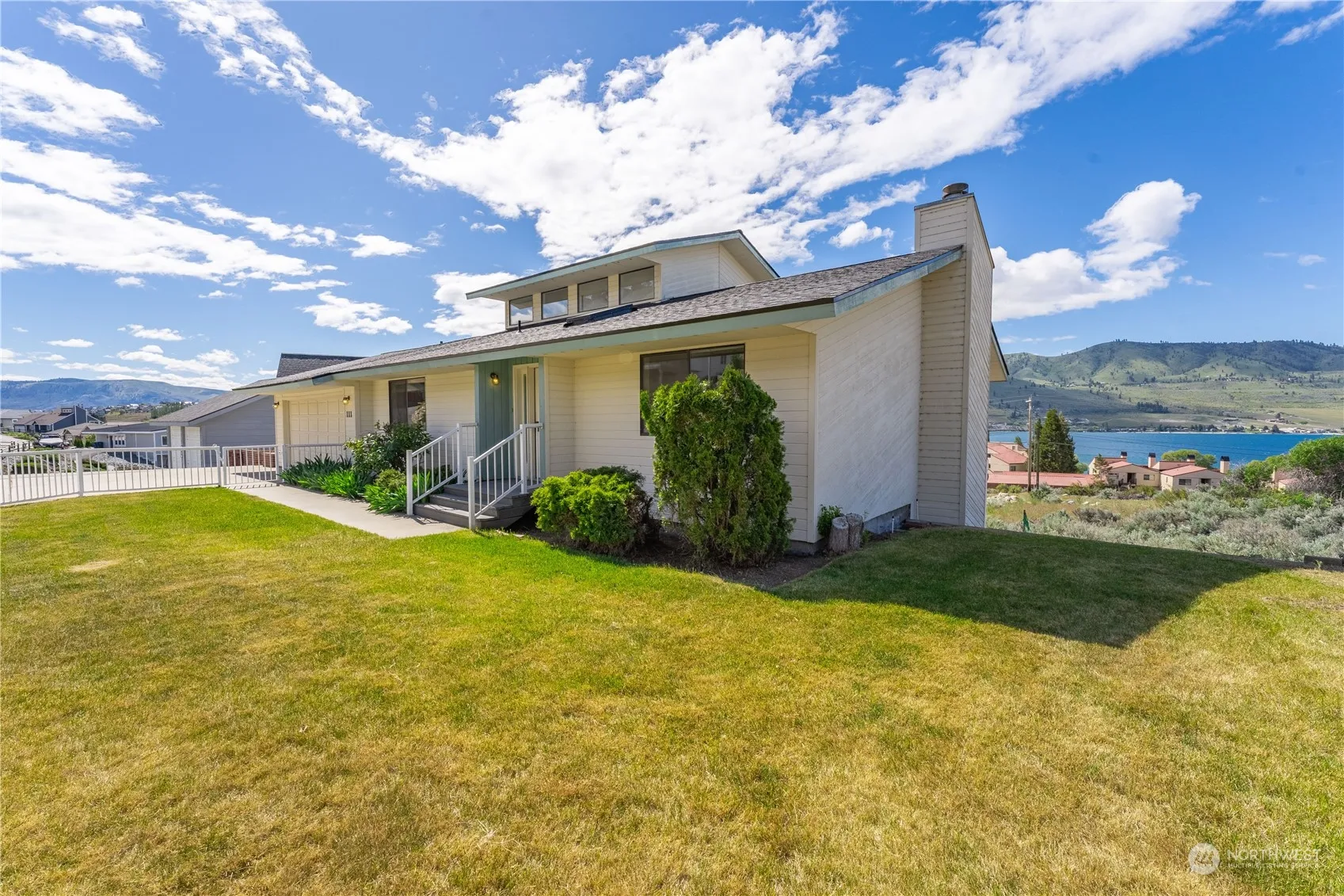 Nestled within coveted Chelan Hills community, this home boasts breathtaking views of the lake & mountains, promising an idyllic retreat for a tranquil vacation getaway or full-time residence. With exclusive amenities including lake access, buoys, swimming pools, sport courts & parks, leisure & adventure are just steps away. This home features 2 beds/2.5 baths, office, add’l finished room, & an abundance of storage space. A newer roof ensures peace of mind. Adjacent community property to the west guarantees unobstructed views. A 1-year home warranty provides assurance in making this house your perfect haven. Only 5 min. from town, wineries, golf course & more! Sold As-Is. Bring your vision and make it your own!