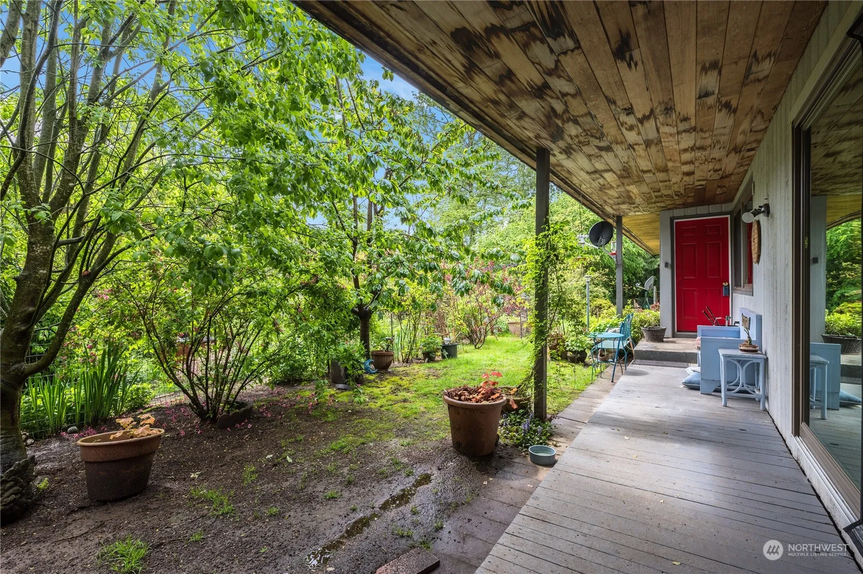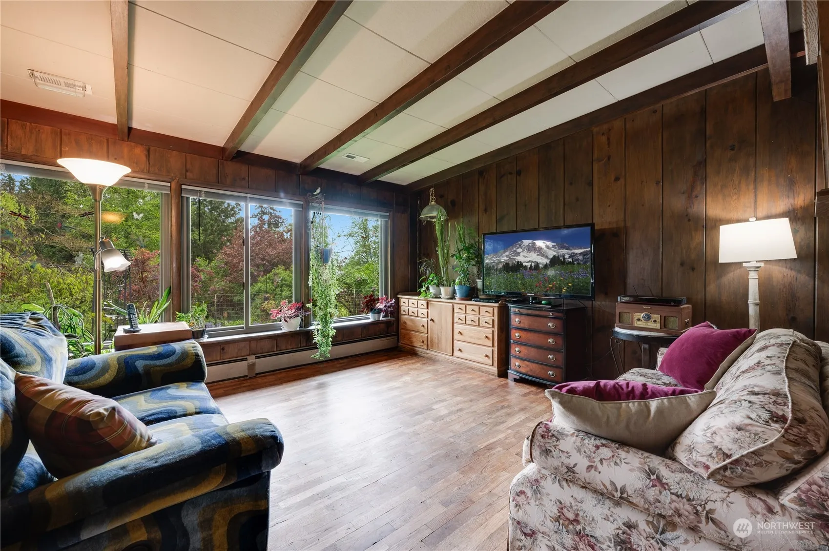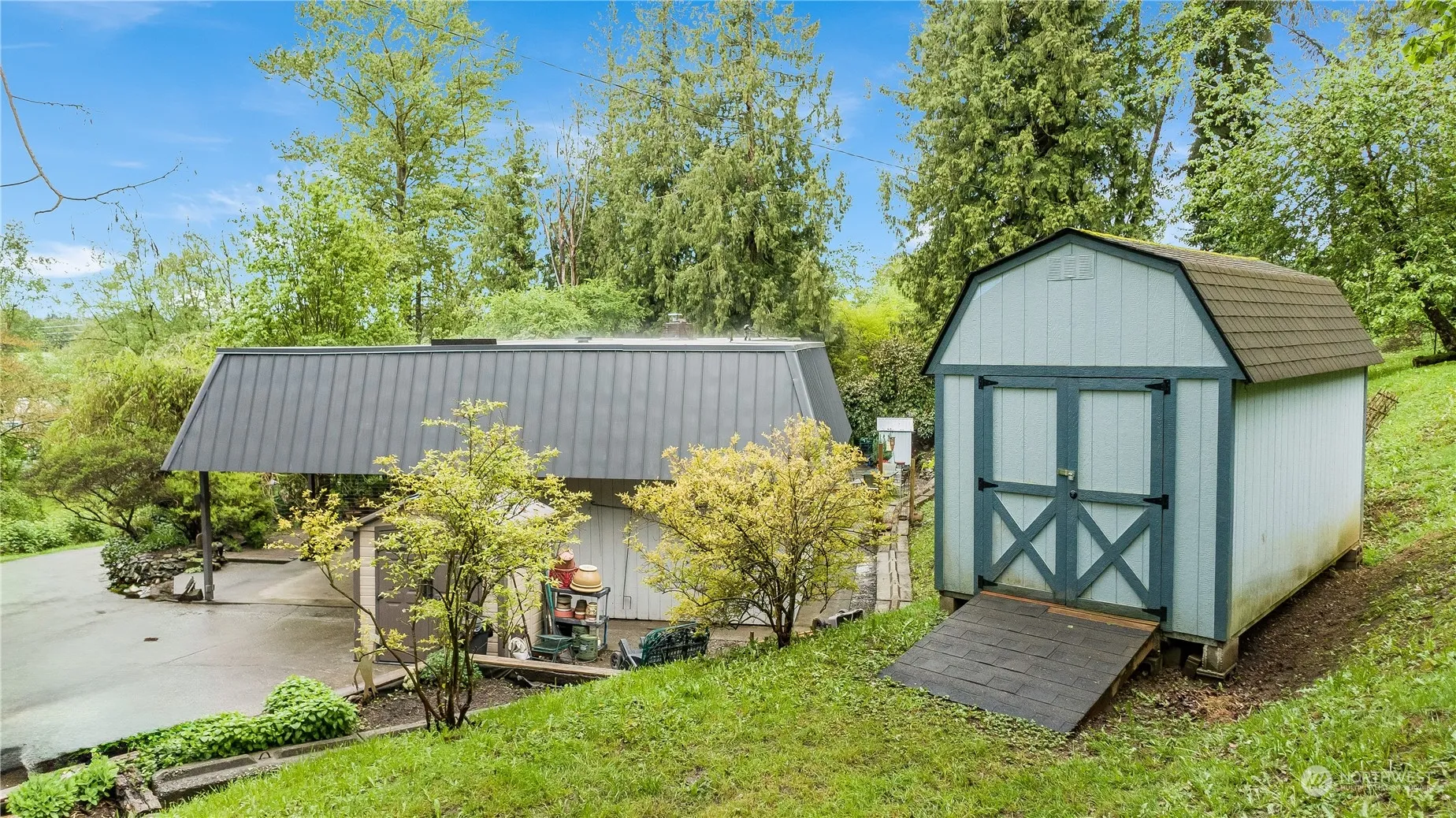 Minutes from I-5 this secret jewel perched a top a hillside gives you a Cabin/Chateau feel. Beautiful 3 bedroom, 1.75 bath on 1.1 acre with open floor plan, new windows throughout has a central brick fireplace, hardwood floors, beautiful cedar beams which gives you a cozy cabin feel. Open kitchen with eating space, white cabinets with pullout shelves, black appliances with the Pantry/laundry room off kitchen. The private primary bedroom with bath and sliding glass door leading to outside patio where you can enjoy your garden oasis, view the wildlife and all your beautiful flowers. Plenty of room to garden on all levels with lots of fruit trees and fruit bearing bushes. Don’t miss the Garden sheds for all you tools. Plenty of parking space.