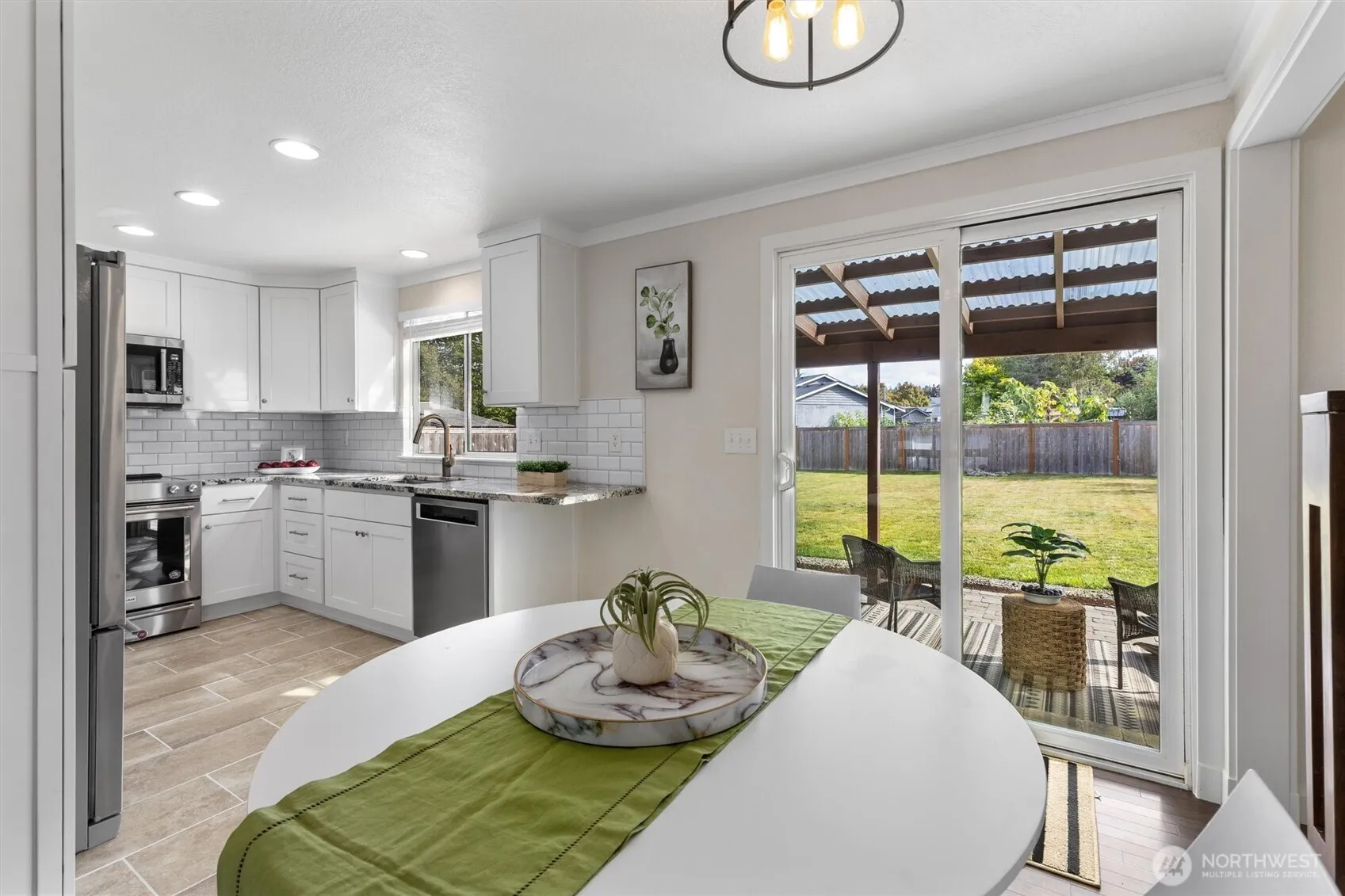 Cape Cod–inspired charmer with a huge, level backyard built for PNW living. A covered front porch welcomes you into light-filled spaces with updated flooring. The living room features large windows & cozy fireplace, opening to the dining area and upgraded kitchen with granite counters and stainless appliances. 2 bedrooms on the main + 2 bedrooms up plus a loft offer flexible use (guest room, office, play, fitness). The private owner’s suite includes an updated bath. Step outside to an amazing covered patio for year-round BBQs & gatherings, overlooking the fully fenced yard—great for pets and play. 2-car garage with extra storage. Quick I-5 & Hwy 9 access for easy commuting. Minutes to Jennings Memorial Park & trails & Ebey Waterfront Park.