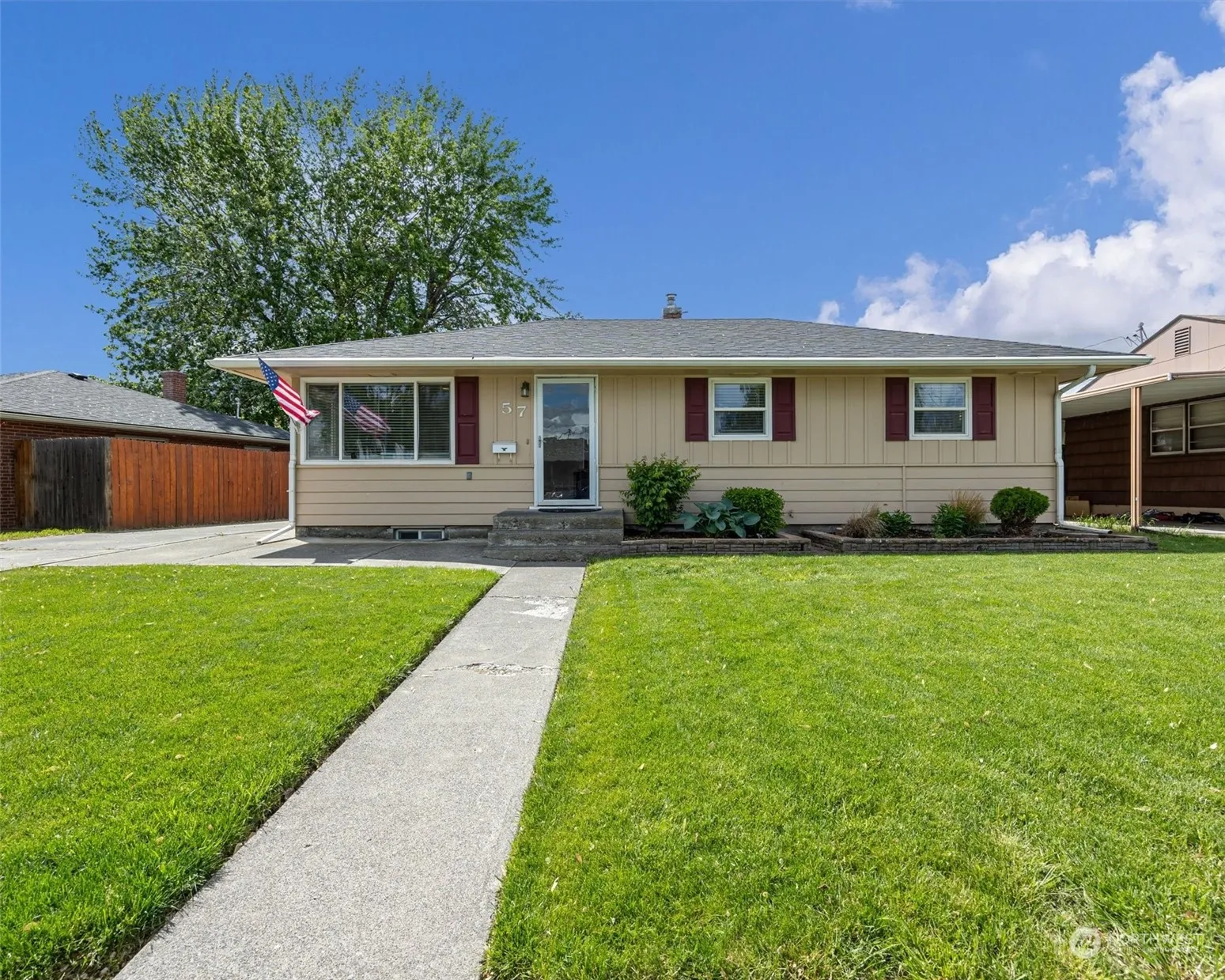 Charming single-level home w/ large basement! Light & bright open main floor w/ original hardwoods, sunny living room, dining room w/ built-ins, & the updated kitchen w/ SS appliances & granite countertops. 3 good-sized main floor bedrooms, & an updated full bath w/ lovely tile flooring & shower. Head downstairs to the spacious basement w/ ample storage throughout: expansive family room/flex area, 4th bedroom w/ walk-in closet, & a refreshed 3/4 bath/laundry room. Don’t miss the updated flooring throughout the basement! Fully-fenced backyard oasis w/ Travertine paver patio, oversized pergola & newer storage shed w/ French doors. Underground sprinklers, 1-car detached garage & located near Mill Creek, restaurants, parks, golf, shops & more!