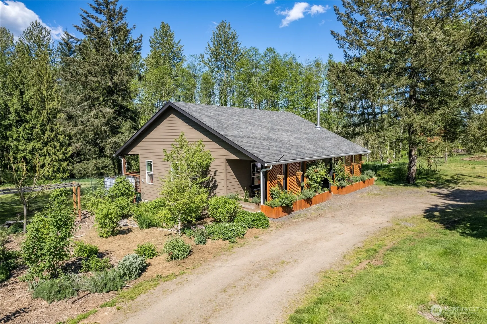 This 4.76 acre hobby farm/ranchette is well equipped with all the essentials needed to live off the land. 2-2500 gallon water tanks great for watering the 15 Apple trees, 3 Peach trees, 2 Pear trees, Cherry and Elderberry trees, raised herb beds, fully fenced garden area and 5 kinds of berries with ample room for livestock and critters. 2 bedroom (3 bed septic) 1 full bath, 1120 square foot home, built in 2021 has plenty of room to expand. SS Appliances stay including washer, dryer, free standing kitchen island and wood burning stove. 420 square foot covered deck great for BBQing and 420 square foot covered front porch. 30 x 20 well house, 48 x 24 shop w/mechanics pit, RV parking, minutes to downtown Mossyrock, Mayfield and Riffe Lakes.
