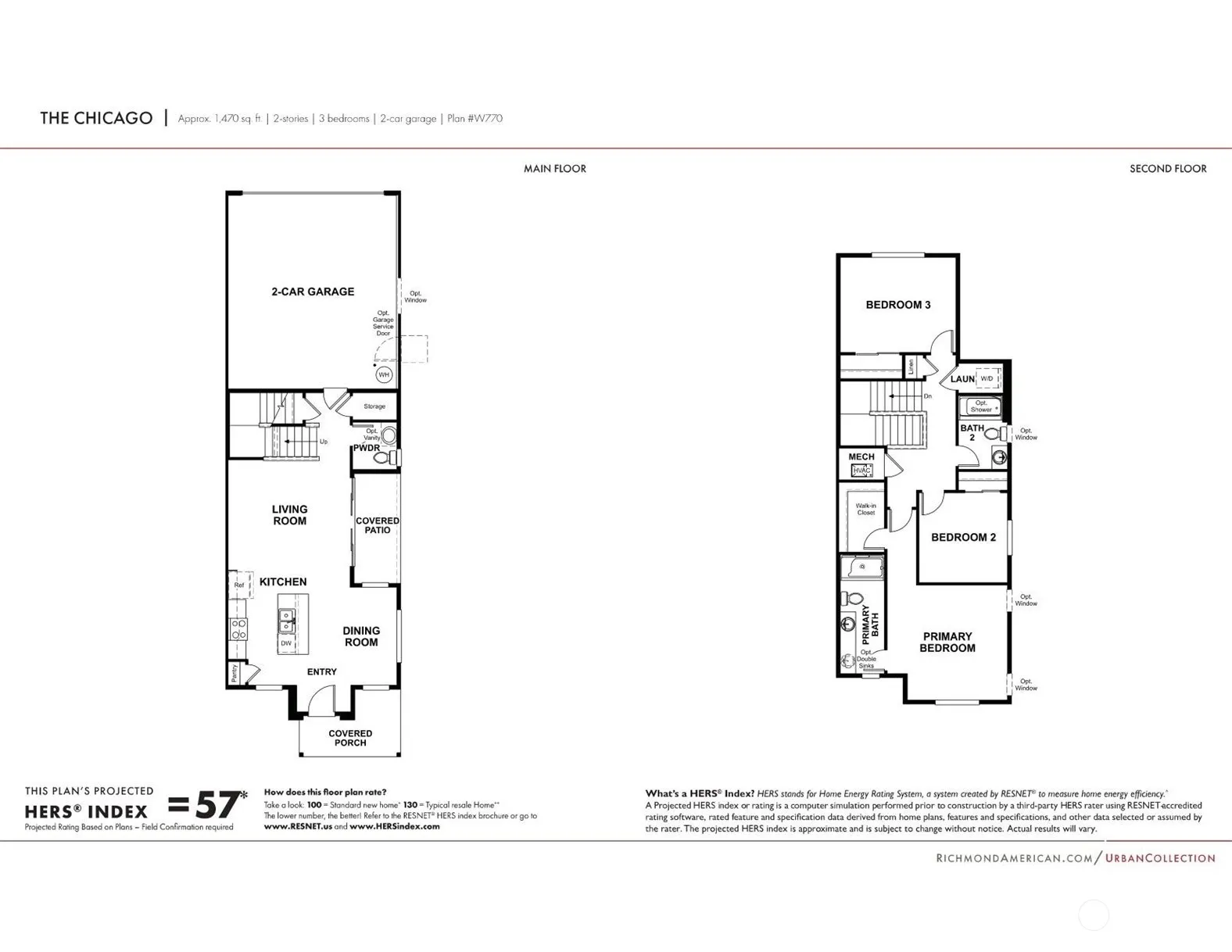 Richmond American Homes brand new Chicago plan. The main floor of the beautiful Chicago plan offers a convenient powder room, open living and dining rooms, a well-appointed kitchen featuring a pantry, large island and center-meet doors leading onto a covered patio. Upstairs, discover a laundry, 3 total bedrooms, two generous secondary bedrooms w/ a shared bath and an elegant primary suite boasting an oversized walk-in closet and bath with optional double sinks. A 2-car garage is also included. ASK ABOUT SPECIAL FINANCING. If you are working with a licensed broker please register your broker on your first visit to the community per our site registration policy.