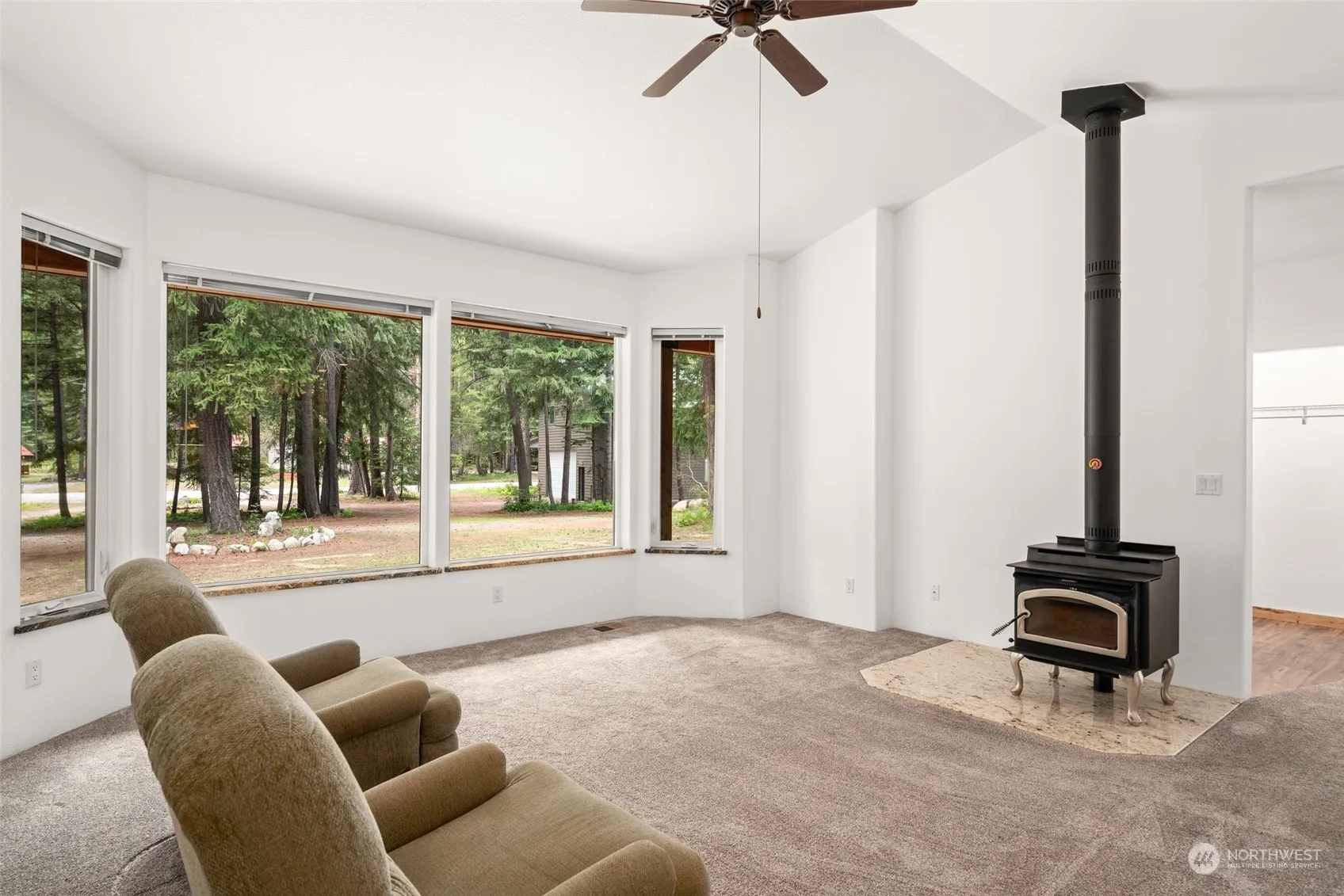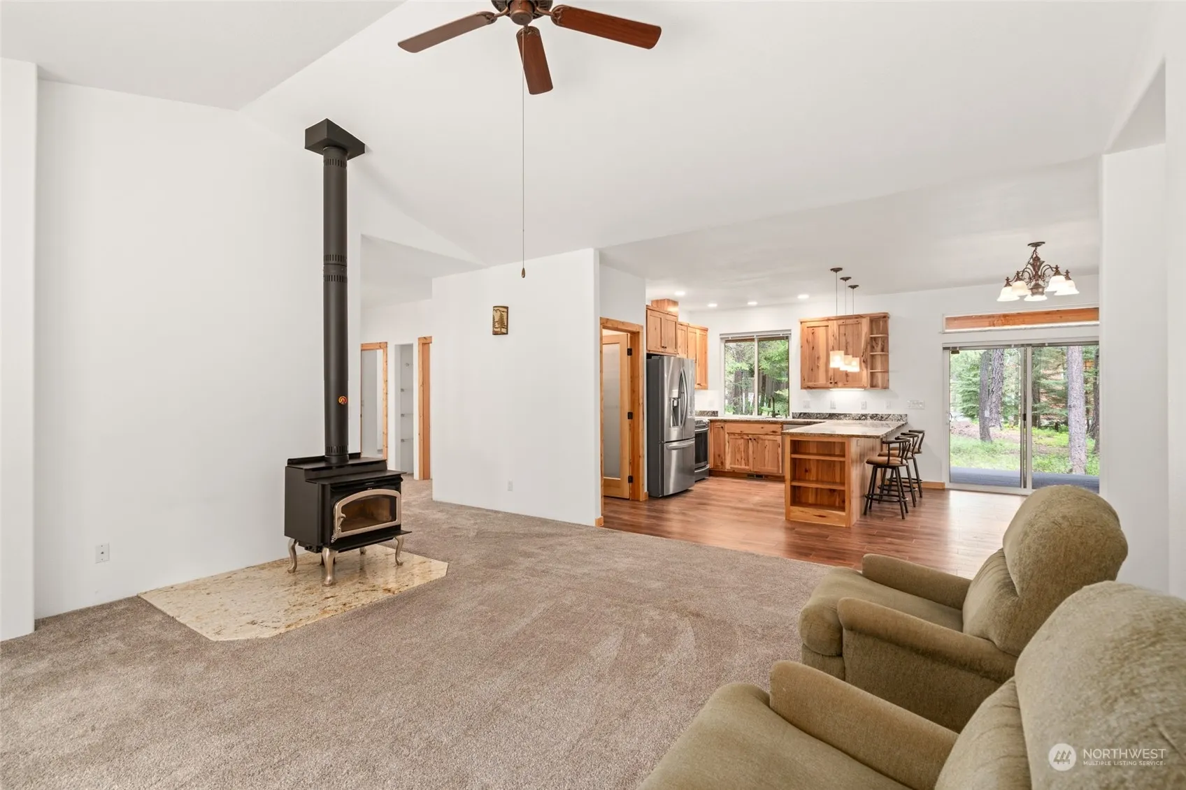 2 Homes on 1 lot. Spacious craftsman 3bd, 2 ba rambler. Primary bedroom has a en-suite bath and a walk in closet. The living area separates the primary bedroom from the other 2 bedrooms. Knotty hickory doors and cabinets along with custom granite countertops are warm and welcoming. Walk in pantry offers plenty of storage. The living room features a wood stove, vaulted ceilings and large windows for enjoying nature. Two large RV carports, a large detached garage, a gazebo with a firepit, a small storage building, decks front and back of house are perfect for all your outdoor adventures. Above the large garage is an ADU which has been a long term rental. It is 2 bd, 1ba, with laundry on lower level.