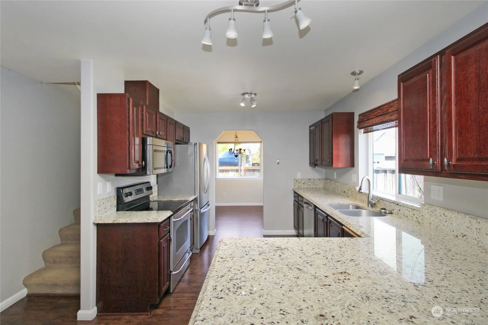 Located in a gated community with recreational amenities and close access to shopping restaurants and parks. Fenced backyard with ample patio space. Situated in a private cul-de-sac. Welcoming vaulted ceilings in living areas. Modern kitchen with granite and stainless steel appliances overlooking a cozy family room. Convenient first-floor laundry. Three bedrooms and two bathrooms upstairs. Primary bedroom with walk-in closet and dual sinks in ensuite. Additional bedrooms with sliding-mirror closets and built-in window seats for extra storage. Grab your agent and come see this gem before it’s gone! Roof will be replaced before closing.
