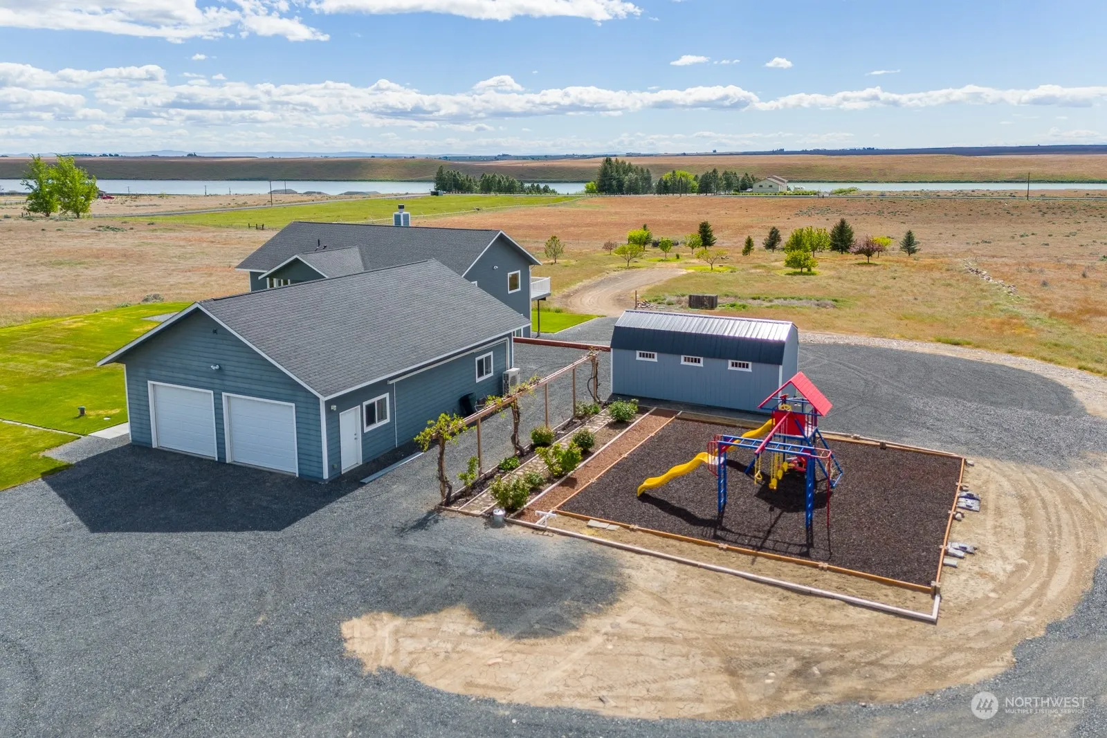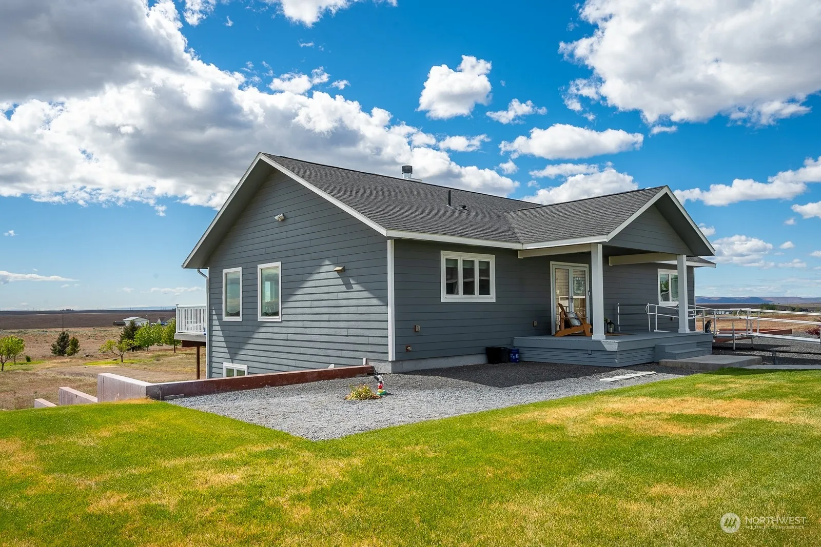 Welcome to this custom built 4 bedroom 4 bathroom home that is situated on 4.81 acres including many fruit trees and ample space for any hobby. Throughout the home, natural light floods the spacious rooms, creating an inviting atmosphere. The basement has a separate entrance presenting endless possibilities for use. Additionally, the basement includes a dedicated laundry room and is plumbed for a kitchen installation, providing added convenience and flexibility. The detached garage offers room for parking with an additional living space that consists of a separate entrance, laundry hookups, additional bathroom, and mini split heating and cooling.