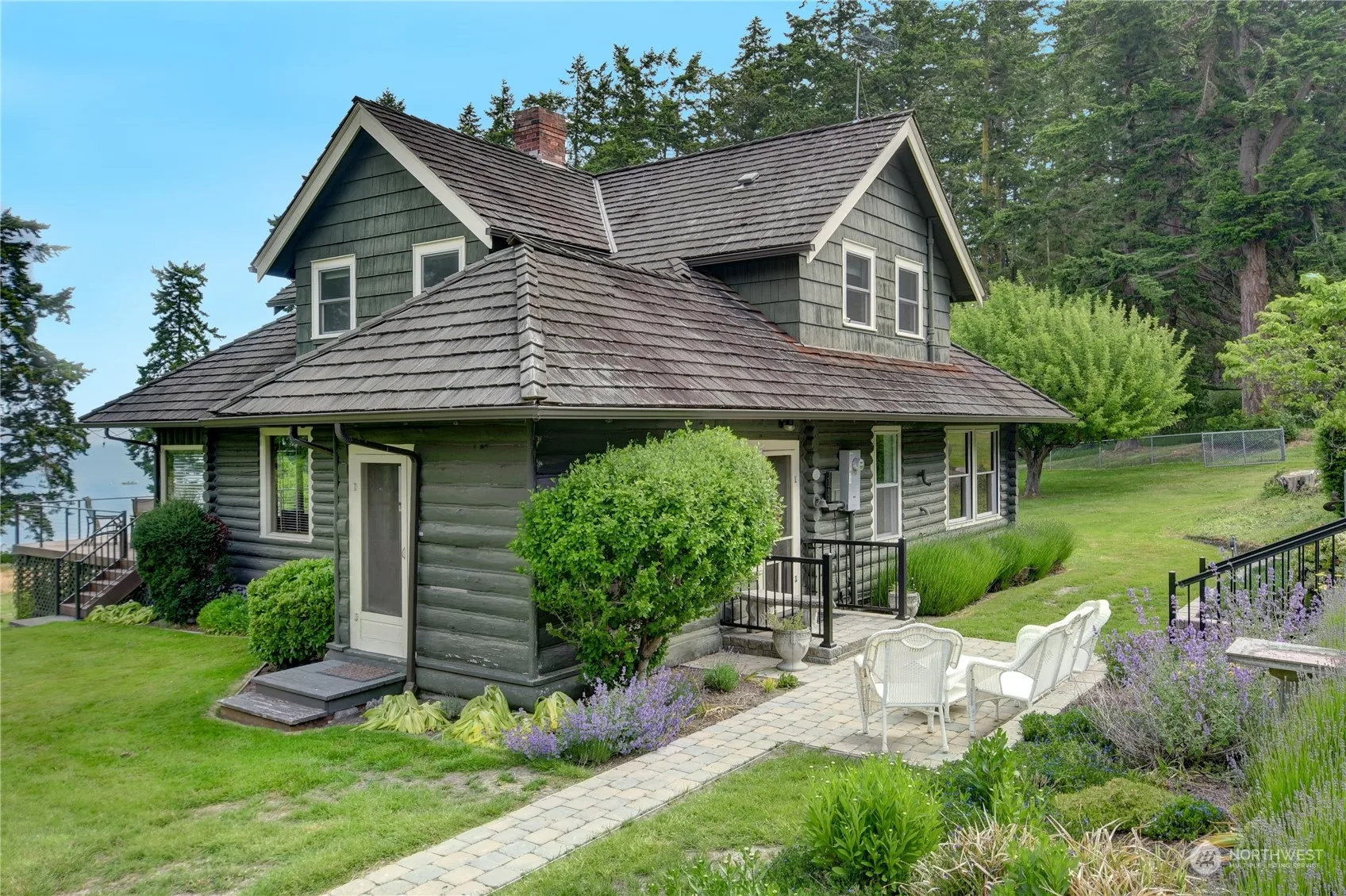 Truly a one-of-a-kind property: Fully fenced, 1.78 acres with 200 ft. of low bank waterfront on tranquil Penn Cove, just 2 miles from charming Coupeville. Main house is an original craftsman, 3 br/2.5 baths, 2286 sqft., with the most amazing views, many updates and historic charm. Additionally, there is a 550 sqft., 1br/bath, level entry, guest cottage built in 2013 with an attached 4/5 car garage. An island rarity–a true 4 bedroom septic! The property has a huge, sunny rolling lawn from the road to the water, a circular drive with lots of parking, and an orchard w abundant fruit trees. Amazing wildlife @ your doorstep, enjoy the kayaking right off your beach, tideland rights included. Fresh exterior paint, preinspected, walk out beach.