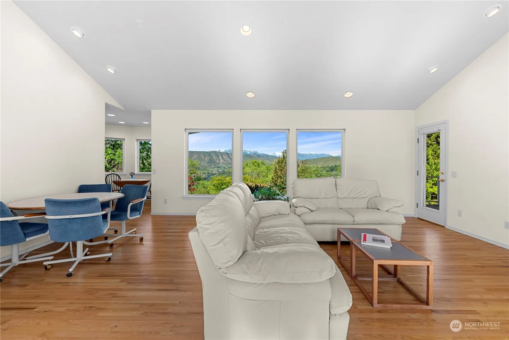 Captivating views with expansive tranquil landscapes. Main floor living with separation of the primary suite from 2 additional bedrooms. The lower level features a family room with a storage room and bathroom. Windows frame stunning Mountain and river views. Large private 1.31 mature park-like acres with seasonal colors and textures Located in the highly desired Sunnyslope Westridge neighborhood.