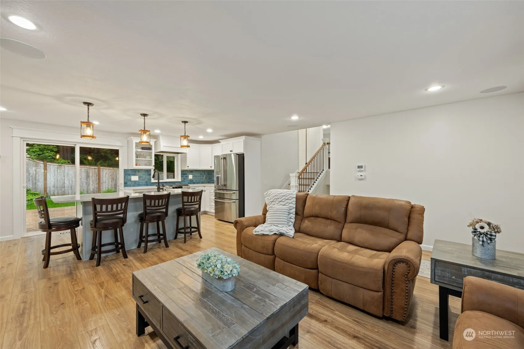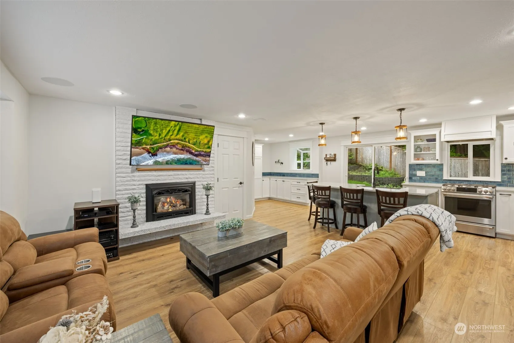 Spacious 3 bed/2.5 bath tri-level home is situated on a 1/3 acre lot nestled next to a greenbelt and creek. Main floor offers a generous sized living room w/ surround sound and cozy gas fireplace insert. Completely remodeled chef-like kitchen, seated island, pantry, coffee bar and new high-end appliances. Vaulted stairway with rod iron balusters. Slider opens to deck and beautifully landscaped yard. Boasting a huge 24×53, 5+ car garage – a mechanics dream features 9’ garage doors, 12’ ceilings, 220 wiring, heater, exhaust fan and more. Front yard and backyards have been completely been revolutionized with new expanded driveway, terraced landscaping, flower planter, lighting and lawn. RV parking. Top rated Northshore schools. Must see!