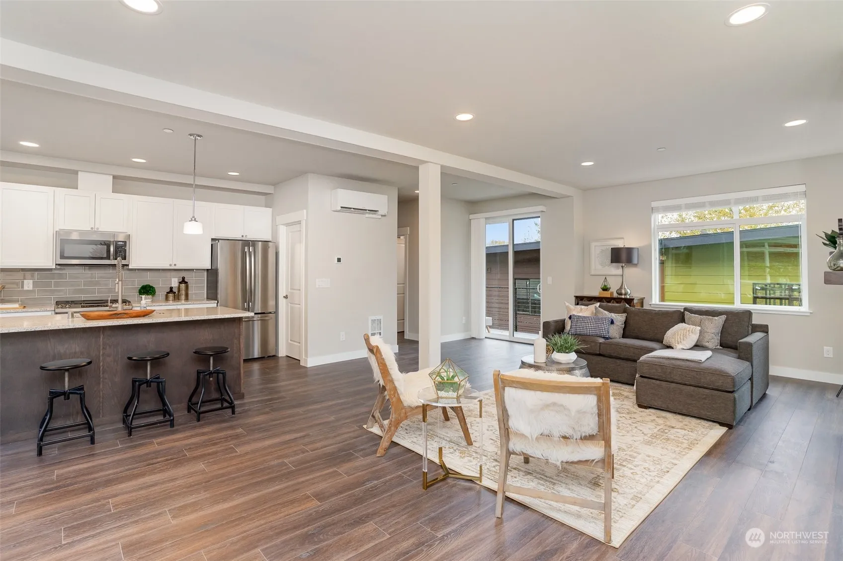 Suite style townhome. Each bedroom boasts its own ensuite, ensuring privacy and luxury for all residents. High ceilings, luxury amenities and modern finishes. A giant great room kitchen/living concept with the kitchen and its granite countertops and high end touches opens to a living and dining area that is great for entertaining. Enjoy the cozy gas fireplace, perfect for relaxing evenings. Located in a vibrant community, you’re just steps away from local parks, beaches, schools, and the charming downtown of Duvall. This townhome is designed for those who appreciate the finer things in life and seek a blend of style, comfort, and convenience.