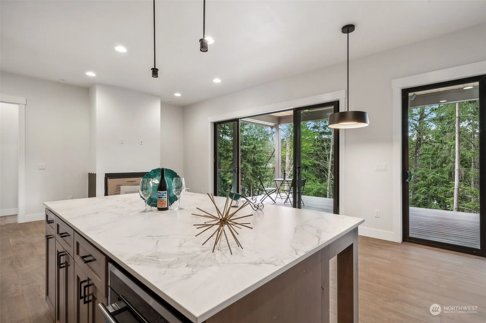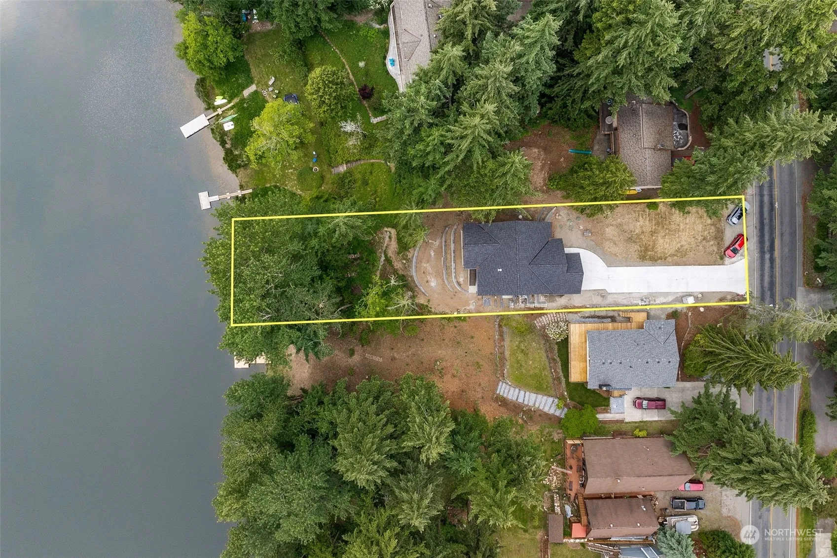 Discover the elegance of this new construction home on Hidden Lake. This exquisite residence features a chef’s kitchen w/Dekton countertops & generous island, stunning floor-to-ceiling gas FP in living & dining. Soundproof primary suite has sprawling deck for ultimate relaxation. Lower has family rm w/full kitchen, bedroom, office nook, large media room or potential 4th bedroom. Enjoy the convenience of a self-maintaining auto-switch over generator, AC & extended garage. Private beach rights to LT Jenks Parks-boat launch, tennis, playground, Bankers dog park & Lakeridge beach. Embrace the tranquil ambiance of waterfront living w/2 view decks, perfect for soaking in the serene surroundings. Experience contemporary NW luxury, comfort & style.