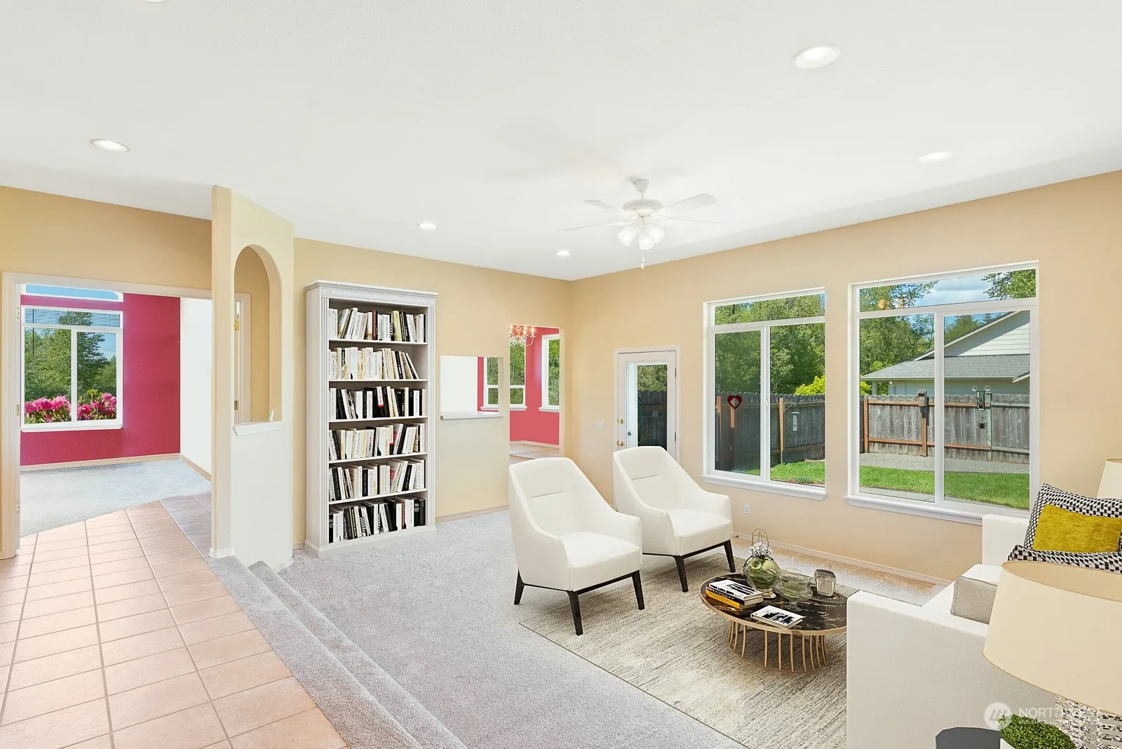Epitome of single-story living in this well crafted residence. Vaulted ceiling living room with ample windows that bathe the space in natural light, centered by the fireplace. Entertain effortlessly with sunken family room, seamlessly connecting indoor and outdoor living spaces from doorway out to back patio just off the brand-new kitchen boasting stainless appliances & convenient breakfast nook. Versatile office offers flexibility or option for 4th bdrm. Retreat to the spacious primary suite featuring walk-in closet, 5-piece en-suite & private access to the backyard. Addtl highlights include full bath for the 2 more bdrms & laundry rm off 2-car garage, new exterior paint, roof, gutters, carpet ,kitchen cabinets and counters.