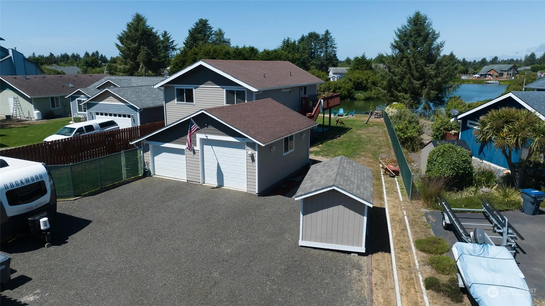 FULLY REMODELED in 2018; new siding/paint in 2022, & meticulously maintained. Located on the desirable Bell Canal with views up the canal, this gorgeous home has much to offer! Upper floor of the home boasts a huge kitchen w/open concept dining & living area overlooking the water. Upper level also features pantry, bedroom, full bath, & one of two primary suites w/attached bath! Step onto the upper deck to enjoy the serenity of the setting. Downstairs find a spacious great room, half bath, laundry closet & slider to fully fenced yard area. The larger of the two primary suites is also on the first floor, w/ walk-in closet, beautifully updated attached bath, & door to rear patio/canal views. RV parking, large dock, fire pit & more!