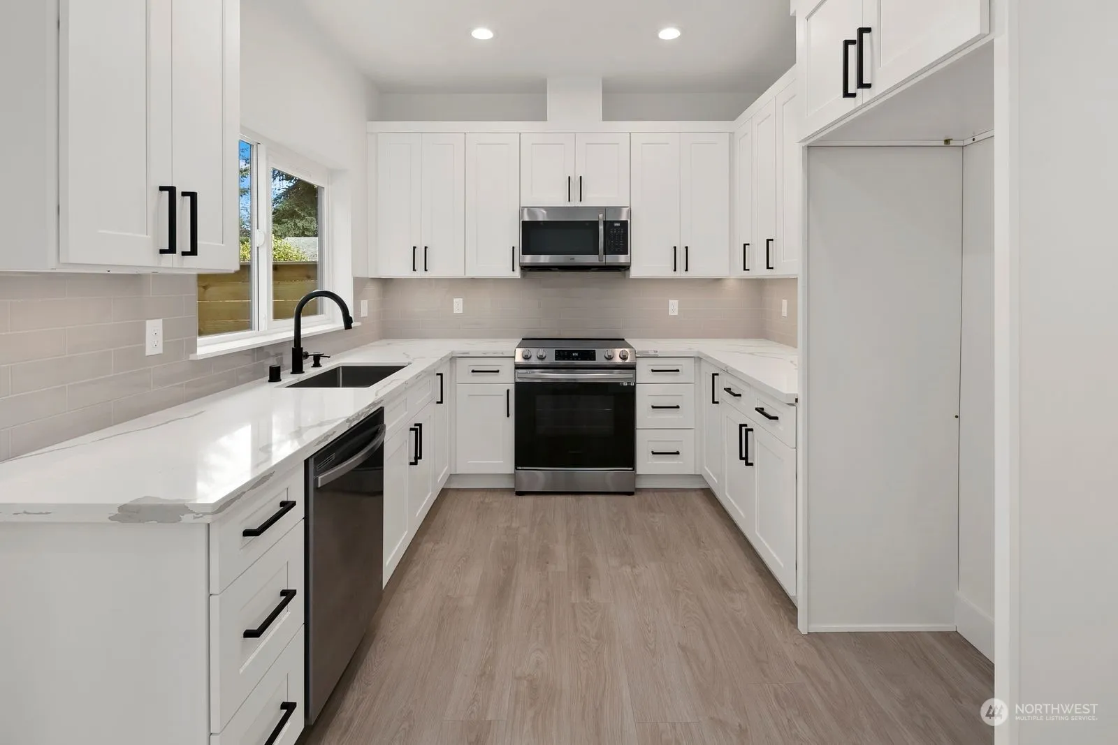 Exquisite details and quality finishes on this modern, new construction home situated on a quiet, dead-end street. Conveniently located just minutes from Downtown Burien where there are abundant options for food, shopping and the weekly Farmers Market. This house speaks for itself with it’s stunning curb appeal and oversized, fully-fenced and landscaped backyard. Light pours into the home all throughout the day due to plenty of large east, south and west facing windows. Every detail was thought of all the way down to the keyless-entry front door and Google Nest doorbell. Large, U-shaped kitchen with under-cabinet lights and quartz counters. Upstairs you’ll find two bedrooms each with their own full bathroom and a large utility room.