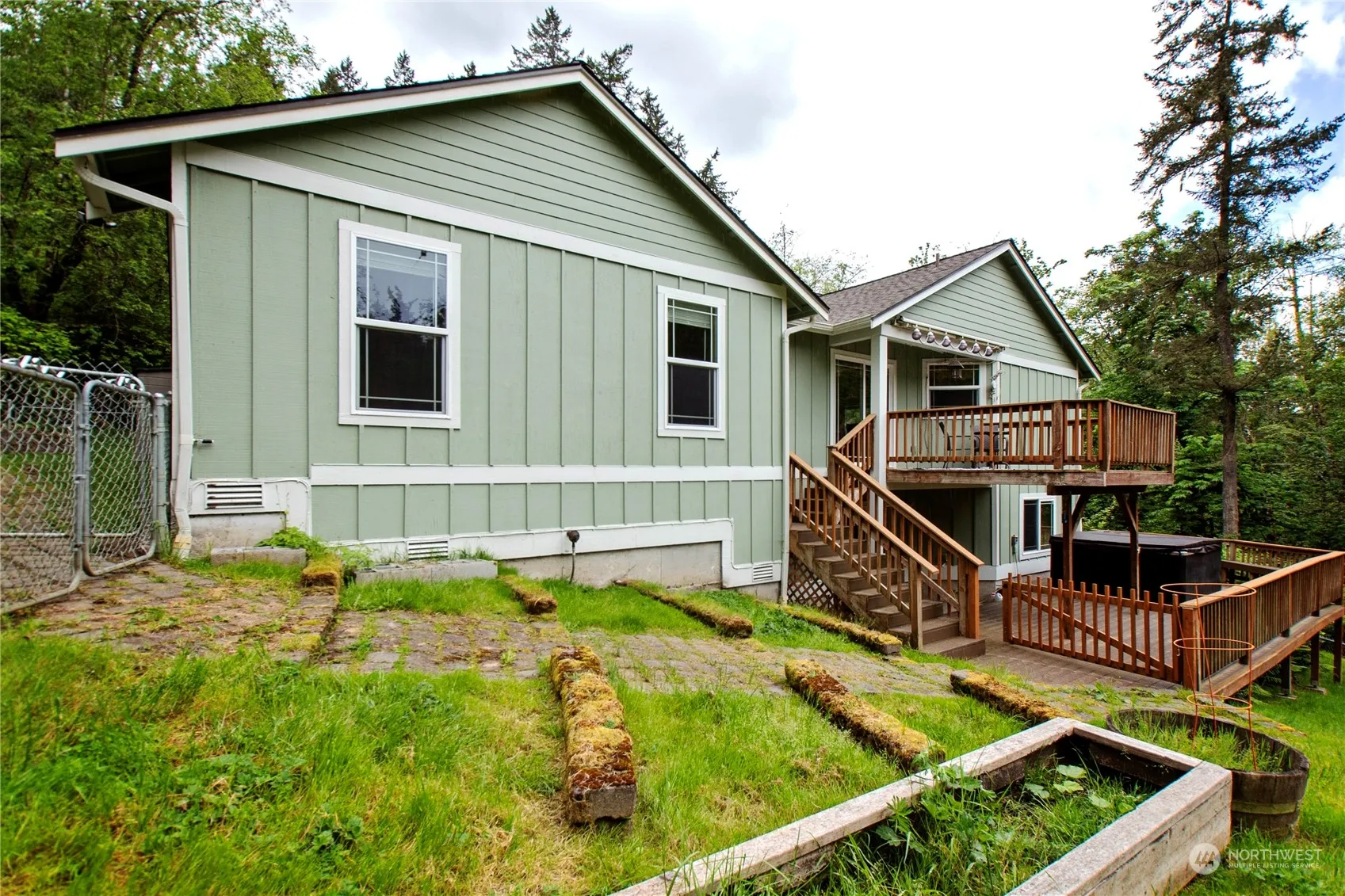 Absolutely amazing 3066 s.f home 1 story home on Bainbridge Island with a fully furnished basement on 2.6 acres. Just 5.5 miles from the Seattle ferry for an easy commute, and just minutes from Historic downtown Poulsbo. The main floor has the primary bedroom, kitchen dining area and great room. The basement has 2 additional bedrooms, a bonus room, and a den/office with a closet that could be easily a 4th bedroom. Fully fenced with room for pets and possible livestock. Hardwood floors, vaulted ceilings, new appliances. New siding, paint and roof in 2020. Multi-level decks and a wonderful hot tub. Fruit trees. Island living made easy!!