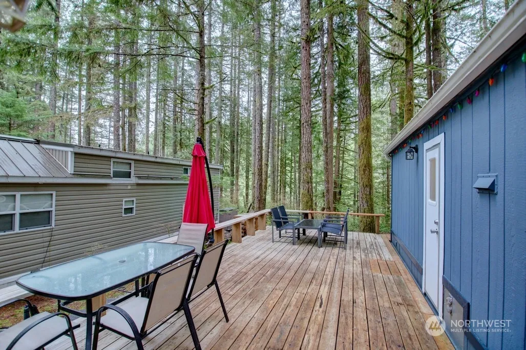 This Redman park model is bright and airy with lots of natural light. It’s got everything you need from plenty of storage to lots of space to relax. Outside, the property backs up to lush greenspace where you can hear the river even from the bedroom inside. Sit on the large deck or around the campfire and commune with nature. A shed is included on the property for additional or larger storage items. The Glen is zoned recreational for 120 days of use out of the year and has all the amenities you could want, including 2 pools, hot tub, tennis court, library, laundry mat, 2 clubhouse, 24 hr security, gated entry, & play areas.