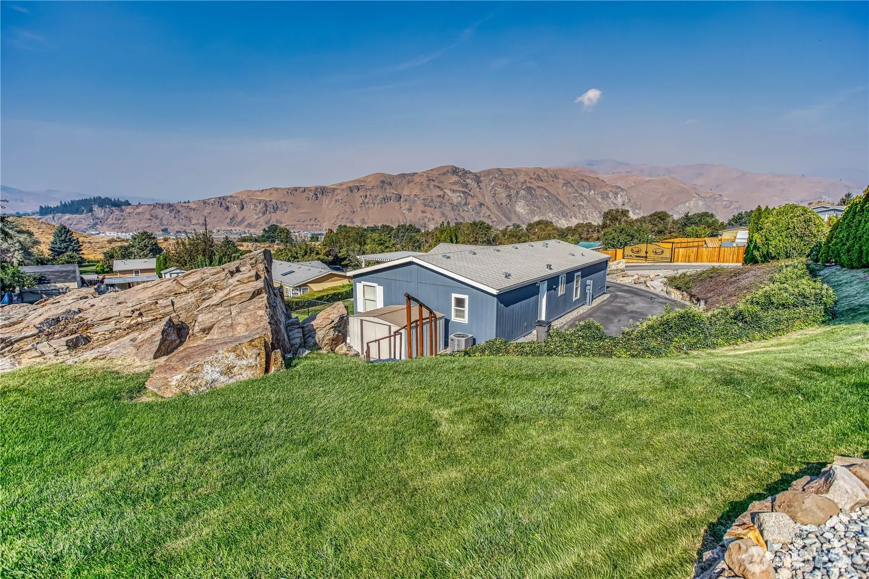 Discover this beautifully maintained ONE LEVEL home featuring 3 bedrooms and 2 bathrooms in a quiet neighborhood that feels out of town, yet is close to everything. Inside you’ll find updated flooring, cathedral ceilings, fresh interior paint, and large closets in every bedroom, plus a walk-in pantry for extra storage. Recent updates include new exterior paint along with a new furnace and condenser (2024) for added peace of mind. Outside, the fenced backyard offers multiple gathering areas, a large patio, mountain views, irrigation water, and a sprinkler system. With ample parking for vehicles, toys, or an RV, this home blends comfort, function, and location perfectly.