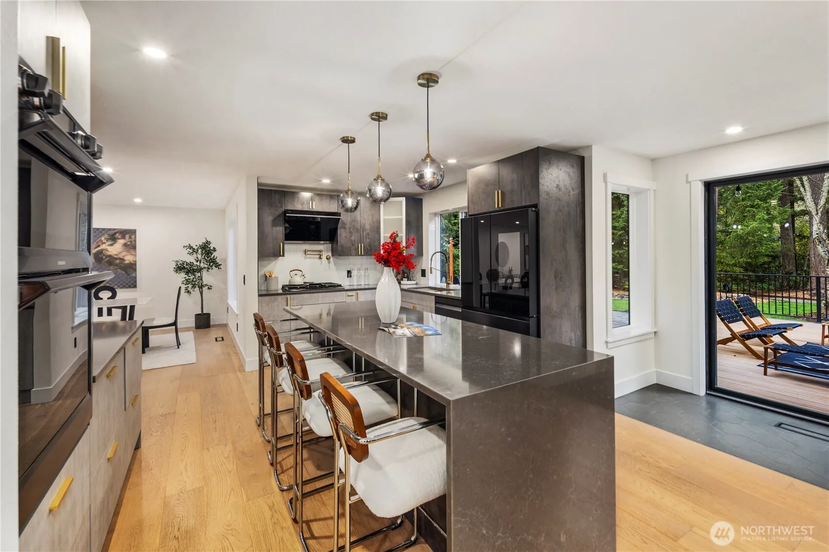 Beautifully remodeled Remington estate on nearly an acre, backing to a tranquil greenbelt. With almost 3,000 sq ft, this residence feels brand new with updated finishes, appliances, and materials throughout. The thoughtful layout includes 4 bedrooms, 2.5 baths, a private office, bonus room, and a light-filled gourmet kitchen ideal for gatherings. The spa-like primary suite features heated floors and a spacious walk-in closet. Step outside to a new 1,200 sq ft deck overlooking a spacious backyard with playground, sprinkler system, and shed. Car lovers will value the 1,500 sq ft 6-car garage with heated shop, storage, and finished attic. With a newer roof, RV parking, and a premier golf course setting, this home blends elegance and comfort.