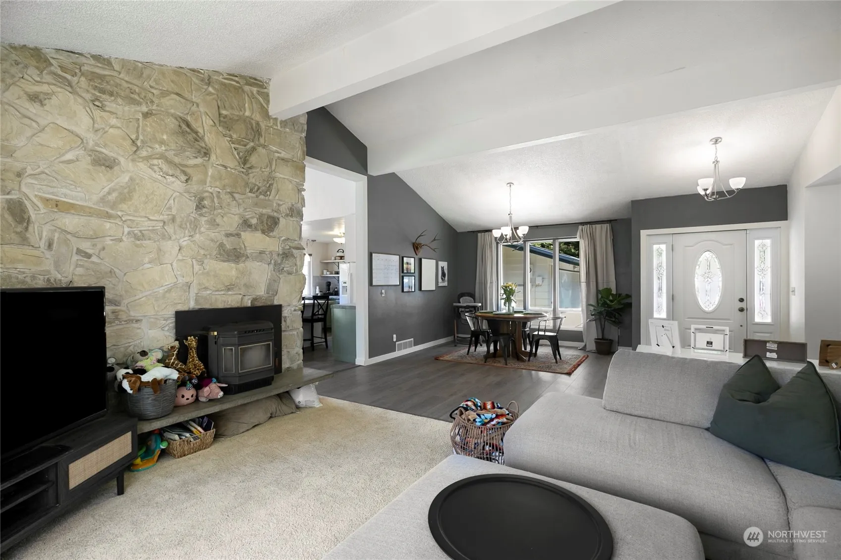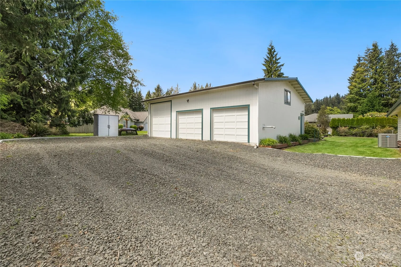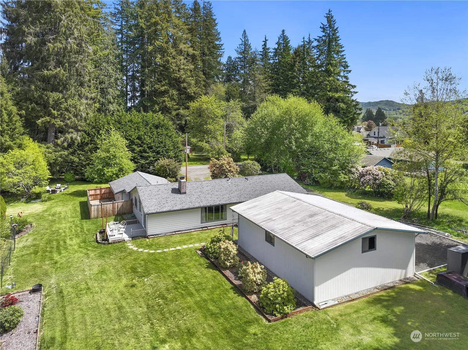 Wonderful 4 bedroom, 2.5 bathroom home w/ att 2-car & det. 3 bay shop! Huge level lot offering lots of privacy & space! Plenty of recent updates – new kitchen, floors and more!! Beautiful, vaulted ceilings greet you as you walk into the front door to the open living room and dining area. The spacious kitchen has a sliding glass door that leads out to the lush backyard (a hedge of mature blueberries is waiting for you!). You’ll appreciate the two-car attached garage along with the large shop space. The home’s large windows throughout offer lots of natural light. Plenty of room for entertaining! The Cental AC is ready to cool you down in the summer months. This home has it all, don’t miss out!
