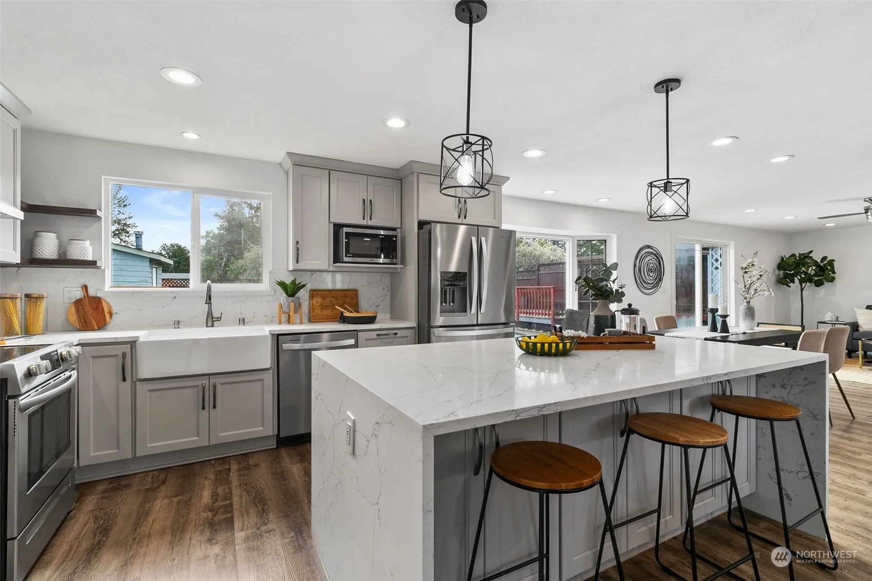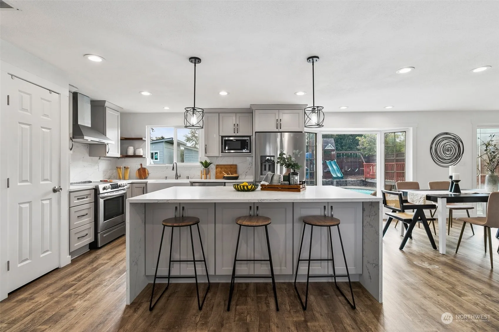 *BOM* The modern 1-story home you’ve been waiting for, ultimate entertainers experience- a PARADISE home for an affordable price! Open the door in awe to view your beautiful modern kitchen featuring stainless steel appliances and oversized Quartz countertops with luxurious waterfall island. Cozy fireplace with new wooden mantle. Gorgeous new LVP flooring throughout entire home. Enjoy your backyard with a Swimming pool measuring depths of roughly 3-12ft, large size deck for those backyard BBQs and additional storage for your convenience in the newly built shed. 2-car garage with brand new door! Close to shopping centers, Kent Station, 20 min from Sea-tac Airport and easy access to Hwy167 and I-5. Truly a home you’ll always be proud to own!