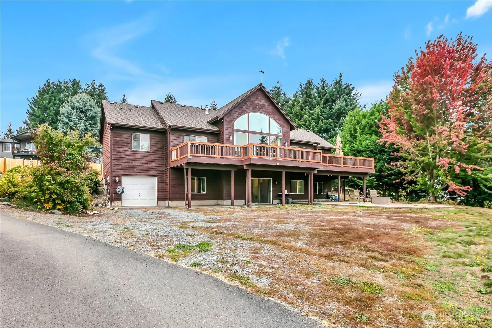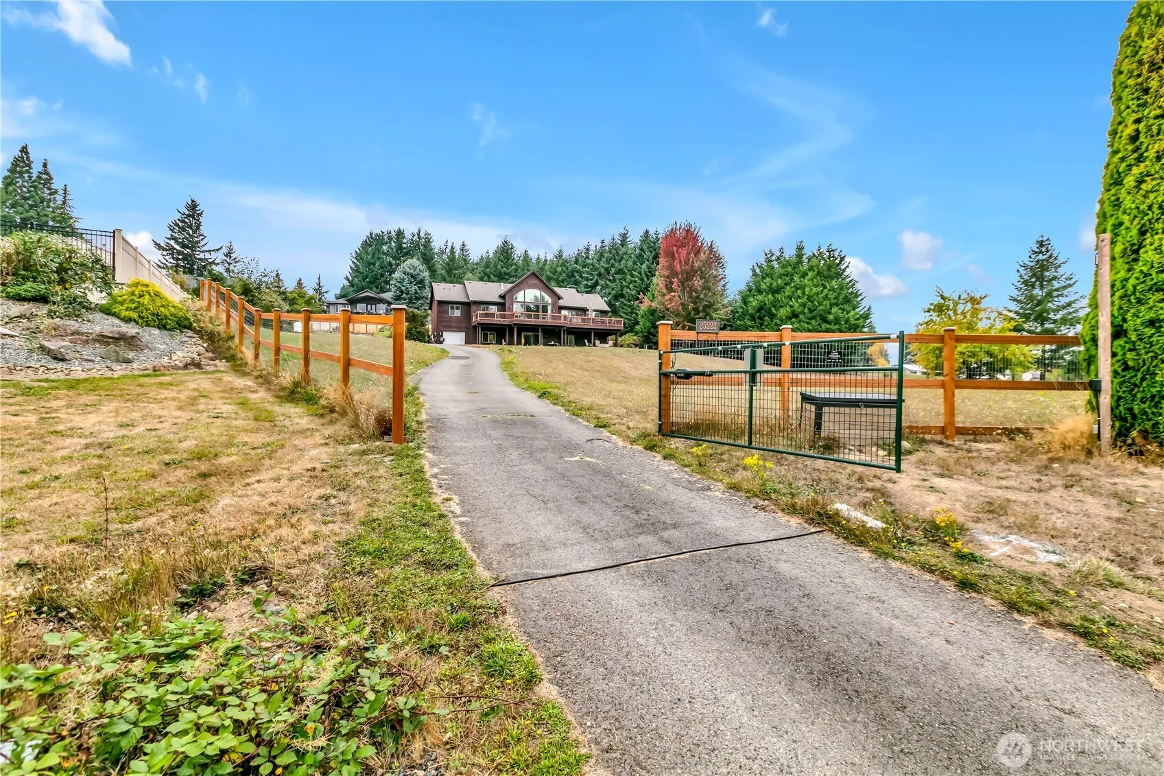 Custom-built 2-story home sits on nearly 3 acres w/ stunning views of Mount Rainier. Featuring 4 bedrooms and 2.5 bathrooms, the open layout offers vaulted ceilings, large windows, and abundant natural light. The kitchen boasts stainless steel appliances and granite countertops, while the dining room opens to a wraparound deck with space for entertaining or relaxing in the hot tub. Enjoy two spacious living rooms, a cozy gas fireplace, heated bathroom floors, and central A/C. The yard is fully fenced with an automated electric gate, RV parking, an electric car charger, close to shopping, JBLM & more.