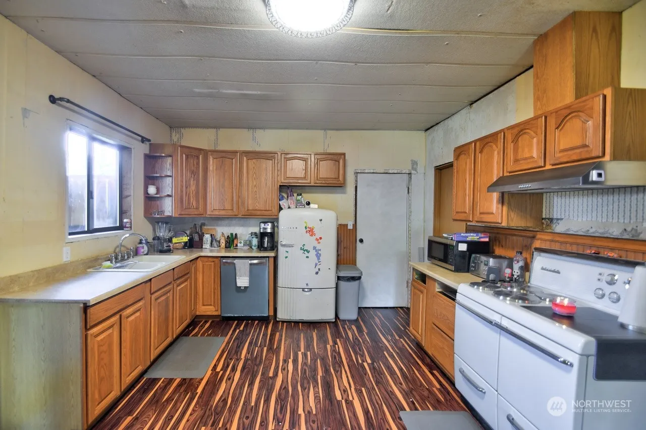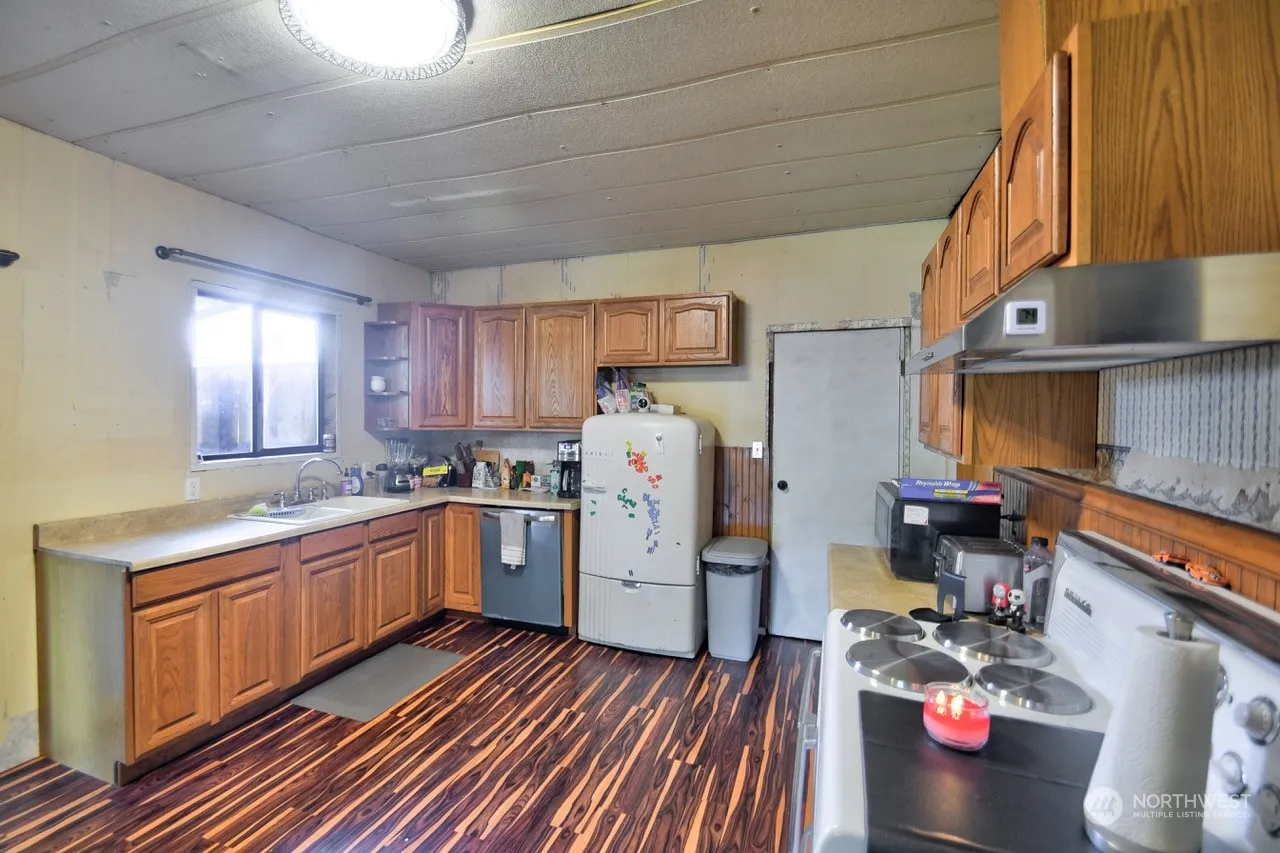 This is a great opportunity for a fixer or flipper! +/- 1392 square foot home is a diamond in the rough and just needs a little TLC to shine! Home has an expansive front porch to sit on and watch the world go by, plus a side deck with cover when you want a little privacy. Main floor has living room, huge eat-in kitchen, large full bathroom w/ laundry, and bedroom. Upstairs has 3 bedrooms with one of the bedrooms having an attached 3/4 bath. Go down a couple of steps and you are in the garage with 2 separate areas and a little shop area. Electrical and some windows have been updated, roof installed in 2019. Pictures of unfinished areas provided.